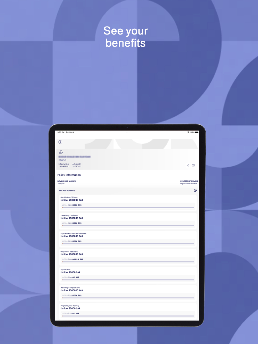 * Easily access your individual and dependents' electronic health cards, policy details, benefits, and covers.