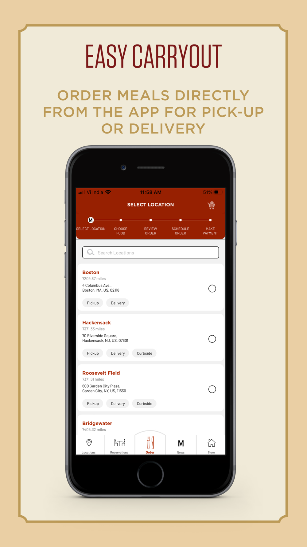 Mobile Order & Pay: Use our app to conveniently place carryout orders. Saver your favorite orders for quick and easy re-ordering.