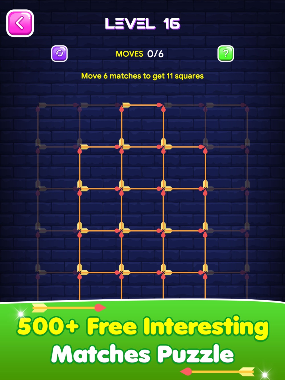 Solve matches maths puzzles by removing, adding and moving matches. Use all matches to find the right solution! Every matches puzzle level is different (shapes, sizes, modes ...). They are carefully made and manually checked, so they are correct.