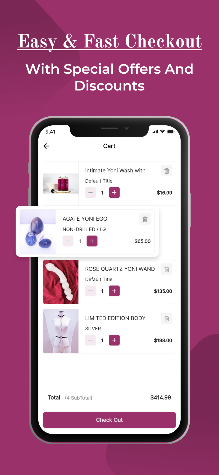 Spice up your pleasure with Yoni Wanderland’s exquisitely-crafted Yoni Wands, Yoni eggs, and Yoni charms, besides other accessories. These items are made with hand-picked semi-precious crystals. Visit our store now!