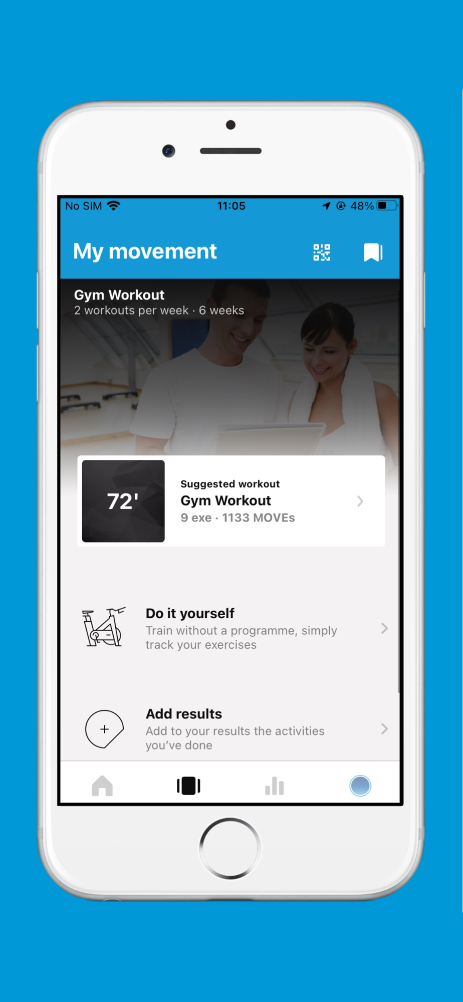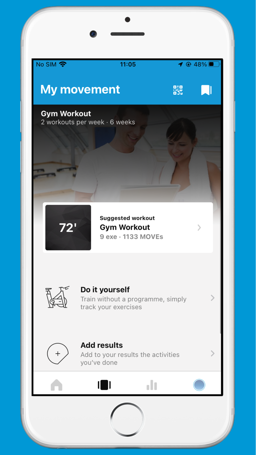 MY MOVEMENT: What you’ve chosen to do: here you will find your programme, classes you’ve booked, challenges you’ve joined and all the other activities you’ve chosen to do at your facility