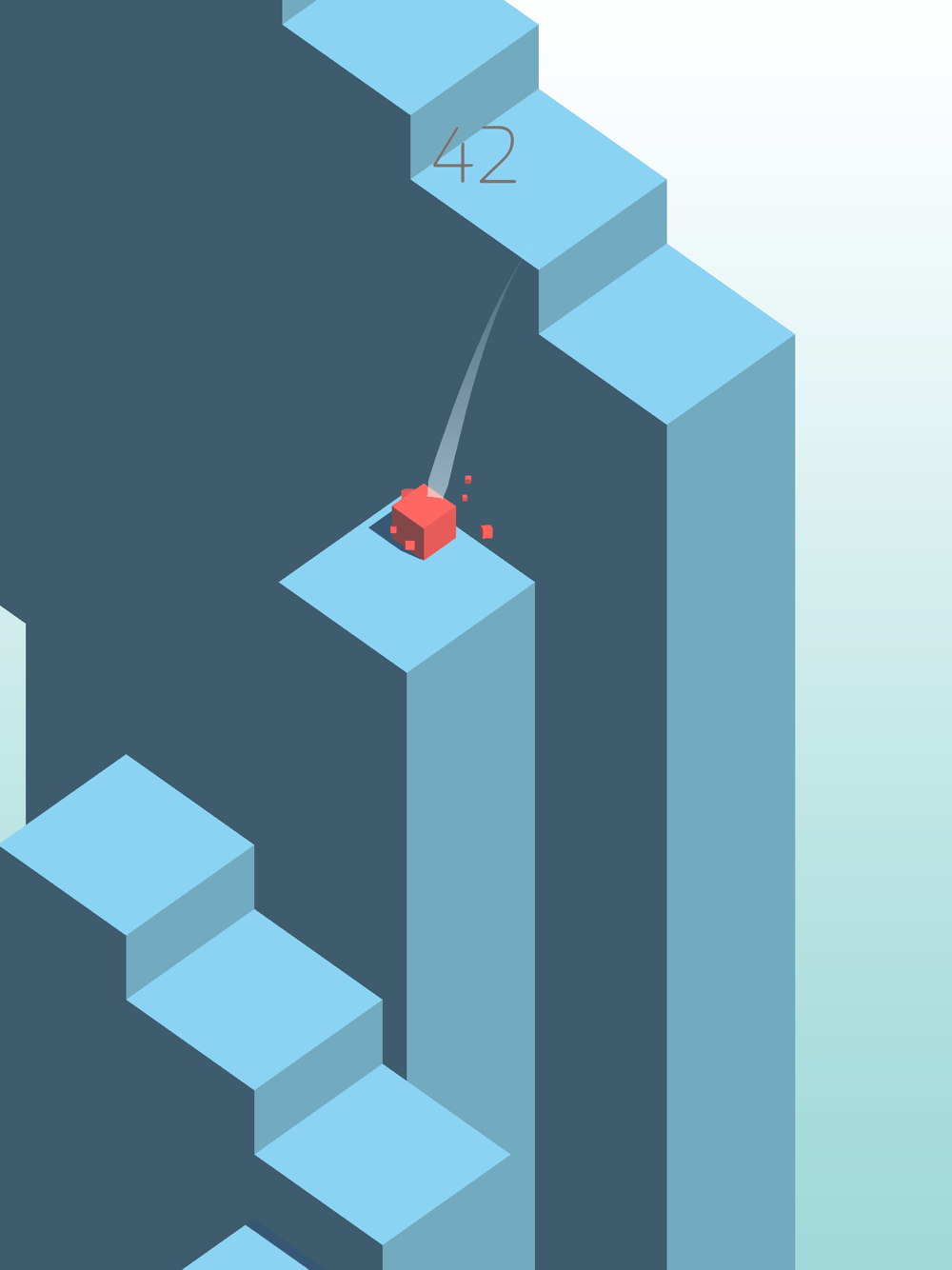 simple to play – just tap and hold to squeeze the cube together, and release to make him jump. You can make small jumps by tapping briefly, or long jumps by holding down longer. Sometimes there are gaps in the stairs, so be careful not to fall, and sometimes the ground will be moving, so keep an eye out for that too.