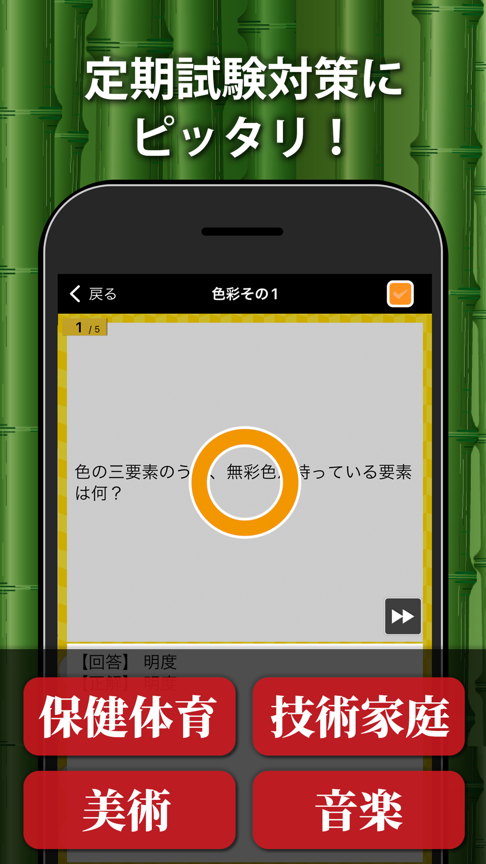 手軽に学べる四択形式。重要基本事項に対応した中学の定期テスト対策にピッタリのアプリです。