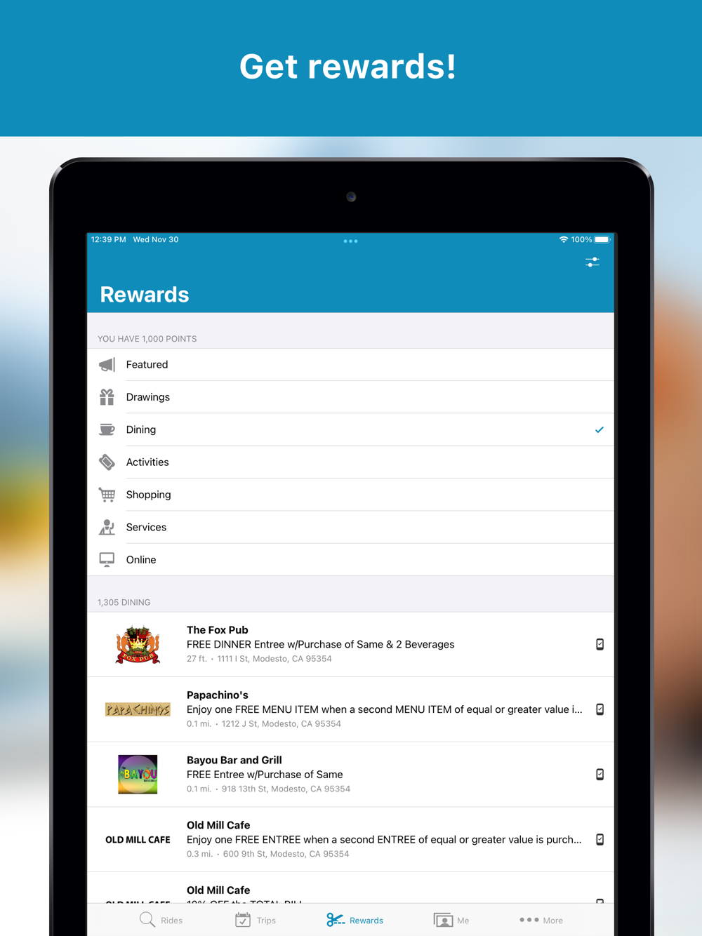 Use the StanisCruise app to find rides and earn rewards in throughout Stanislaus County, CA.
