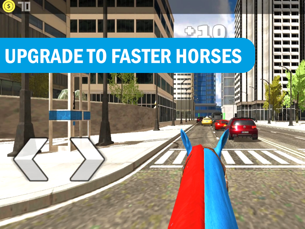 Purchase unique and faster horses with the poıints earned. Jumping over the vehicles or barricades gives you X2 more points.