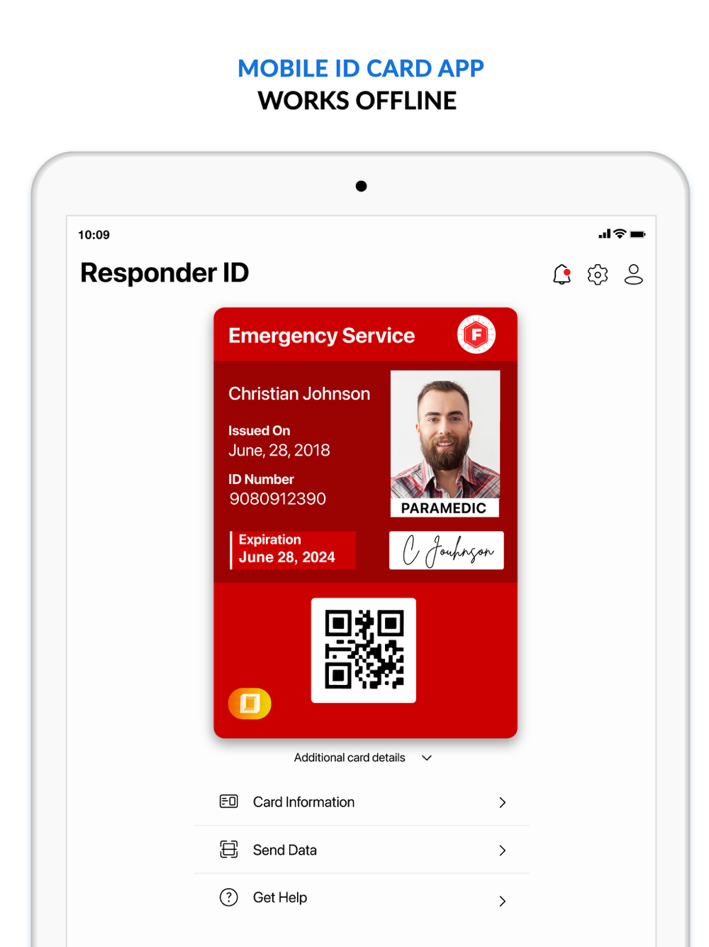 The Responder ID App is a digital ID wallet used by first responders to store their digital responder ID cards issued by their institution. In order to use this app and store your Responder ID card on your mobile device, you must receive a digital ID card invitation from your institution. If your institution is not registered with us and you would like to use this app, please have them contact us.