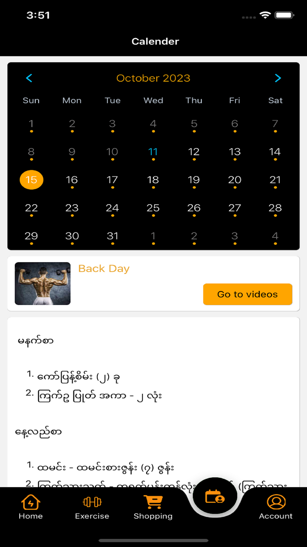 Workout Calendar