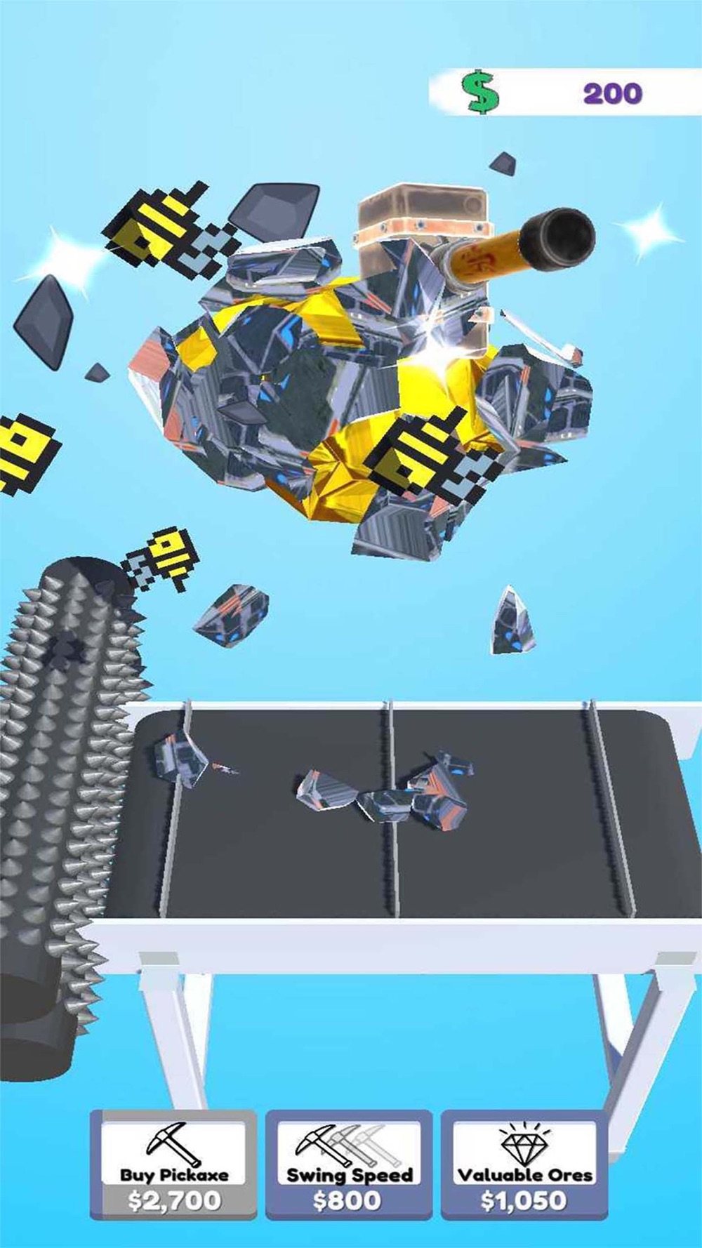 Mine all the rocks, shred them and earn money to upgrade your pickaxe to make it stronger and miner faster!!