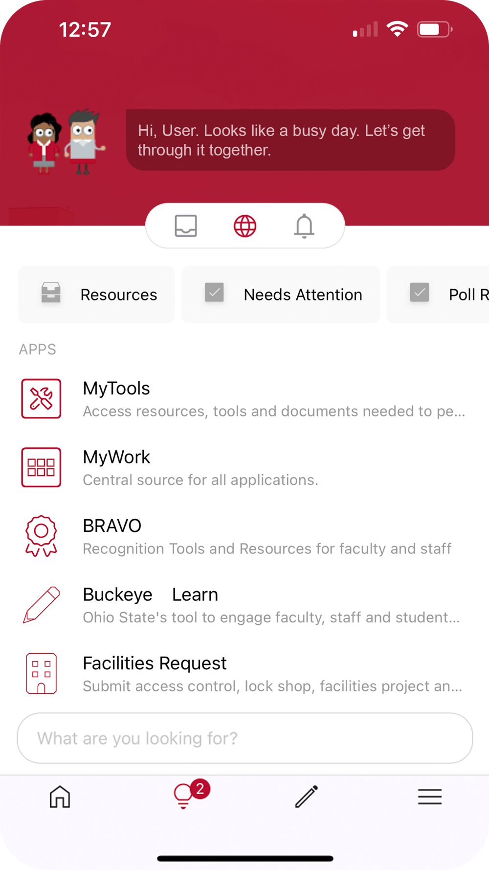 • Convenience - Links to your most-used tools. No need to search for the links you need to do your job. Access your email, MyTools, BRAVO, IHIS, find out what’s for lunch and more right at the top of your screen.