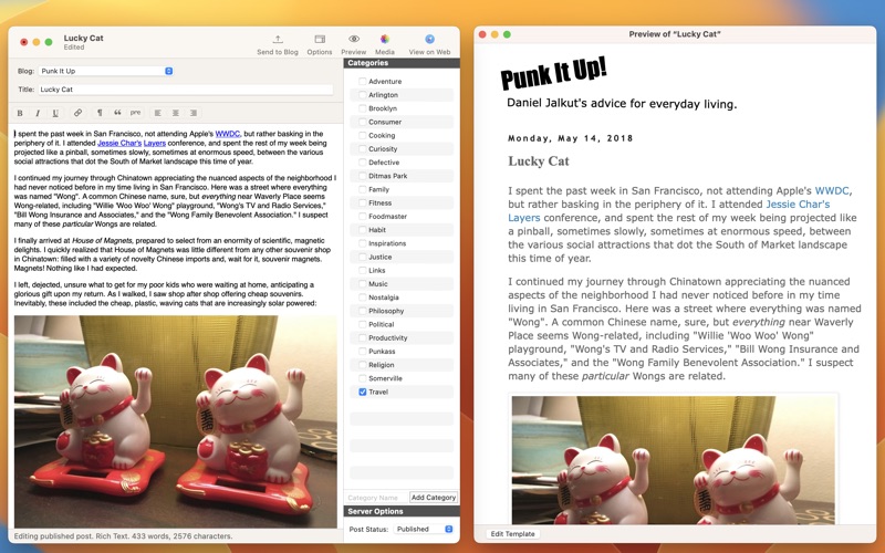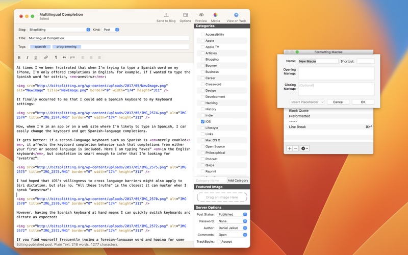 - Cmd-F shortcut now activates search field in post editor window, even if post content is not focused
