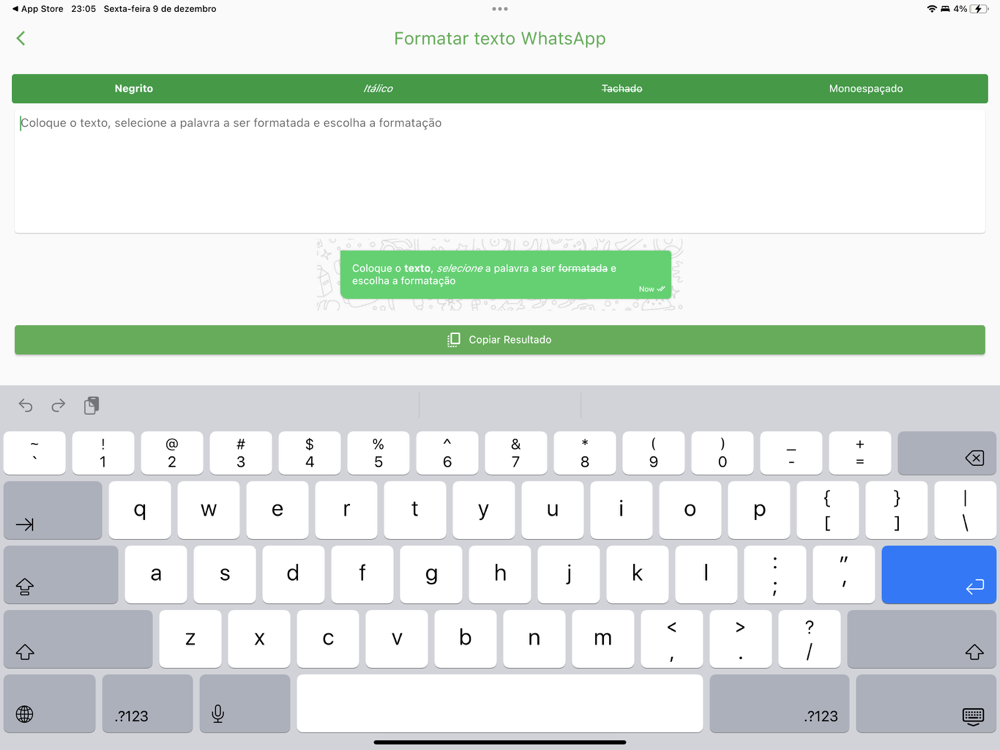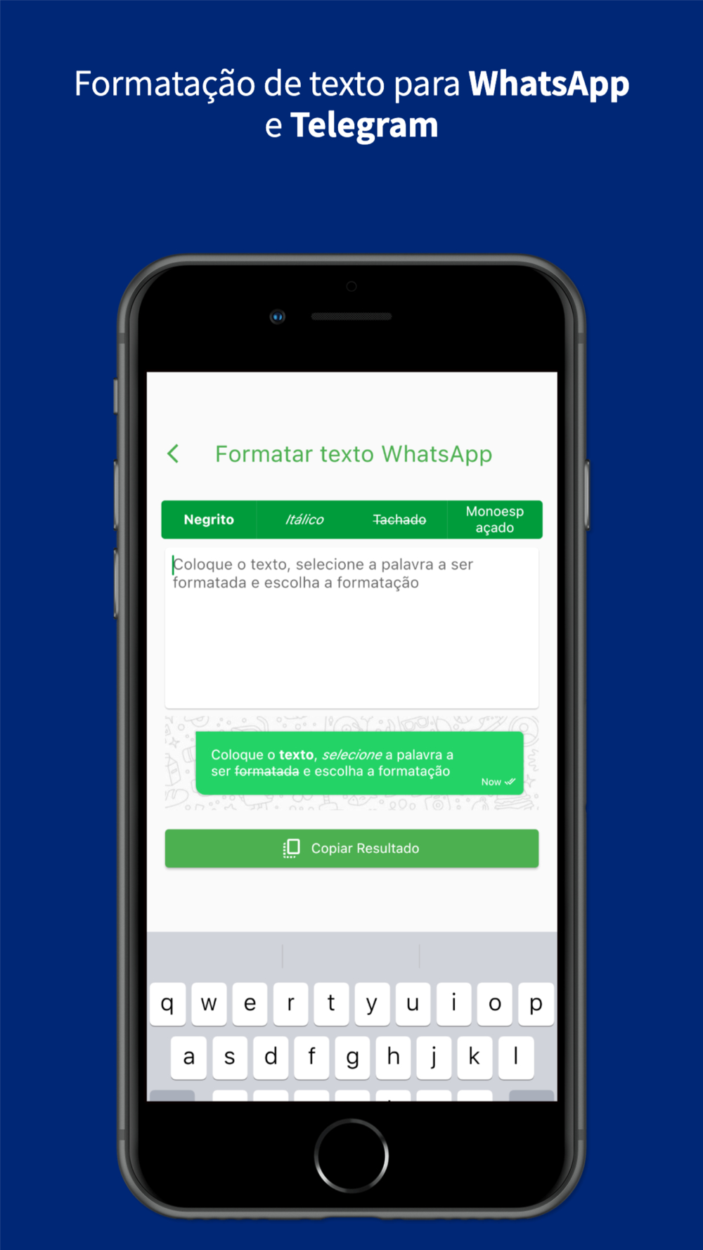 * Formate textos para usar no whatsapp ou telegram,