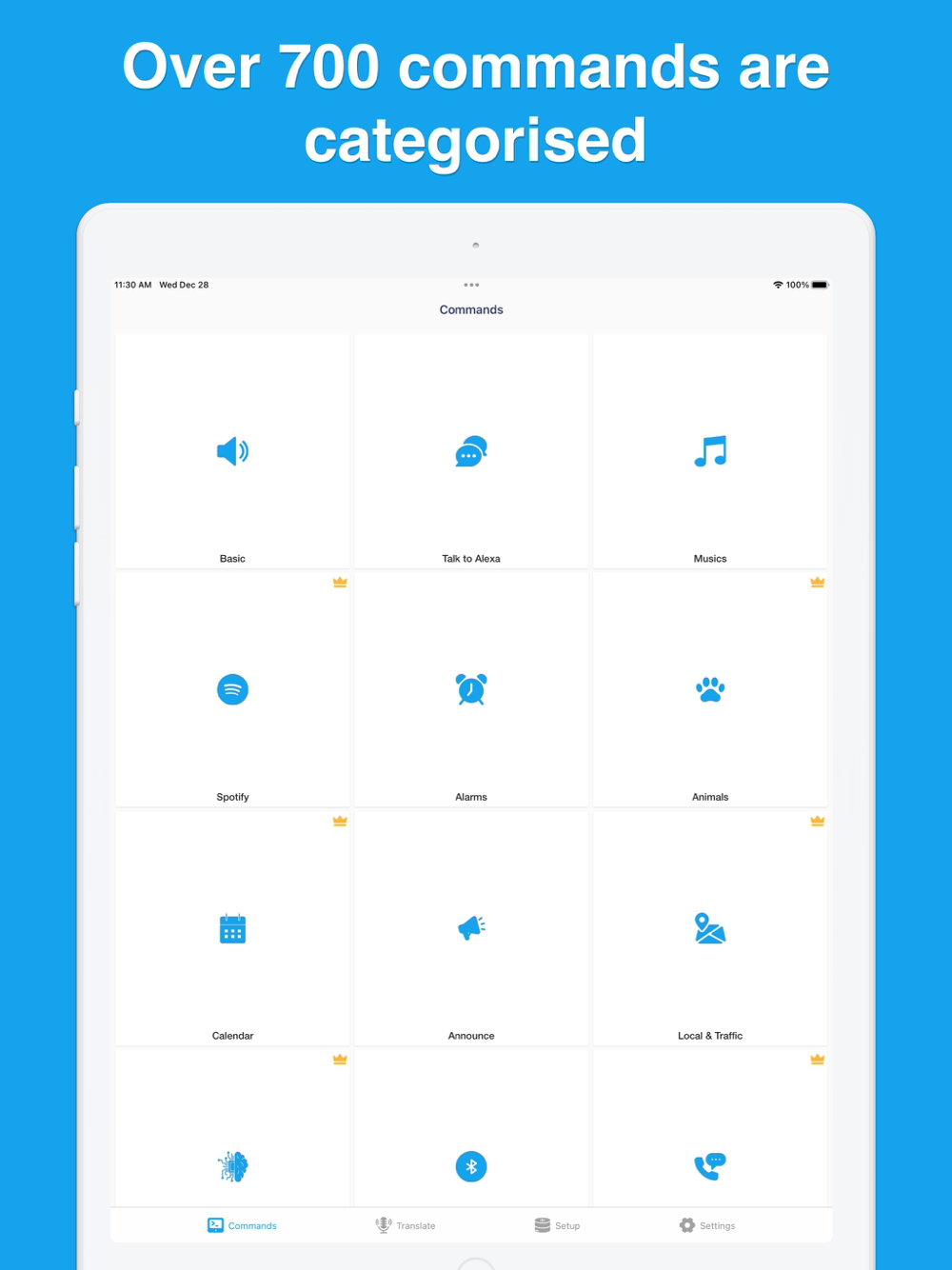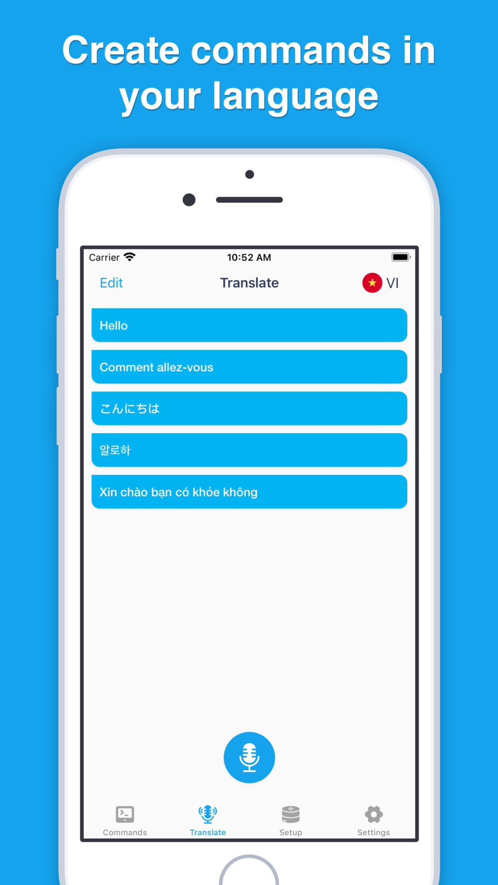Create custom commands for your Amazon Alexa device by speaking in your language. The Commands & Setup for Alexa app will automatically translate into Alexa’s language.