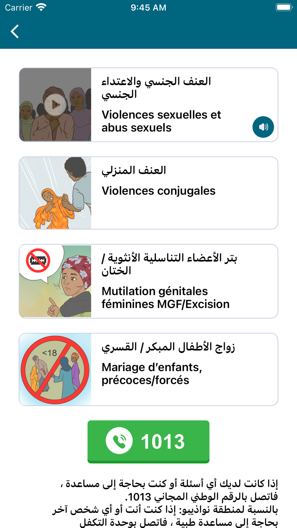Nejatt is an app that works offline on GBV. Available in 5 languages Hassanya, Pulaar, Woolof, Soninke and French. The content follows all Mauritanian laws and the app aims to educate women, even the illiterate ones, about where to get help.
