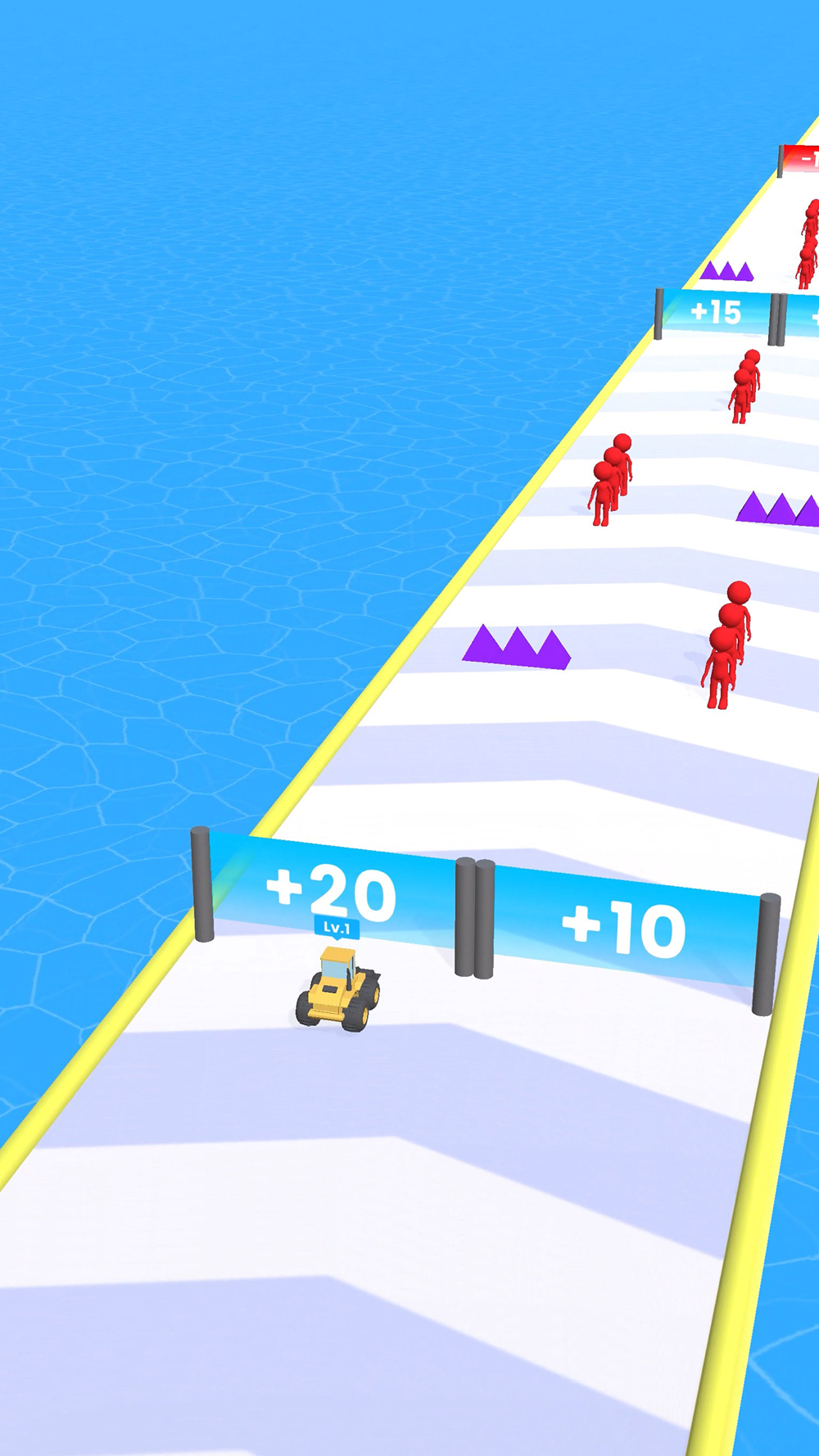 Go through the gates to get more bulldozers and reach the goal!