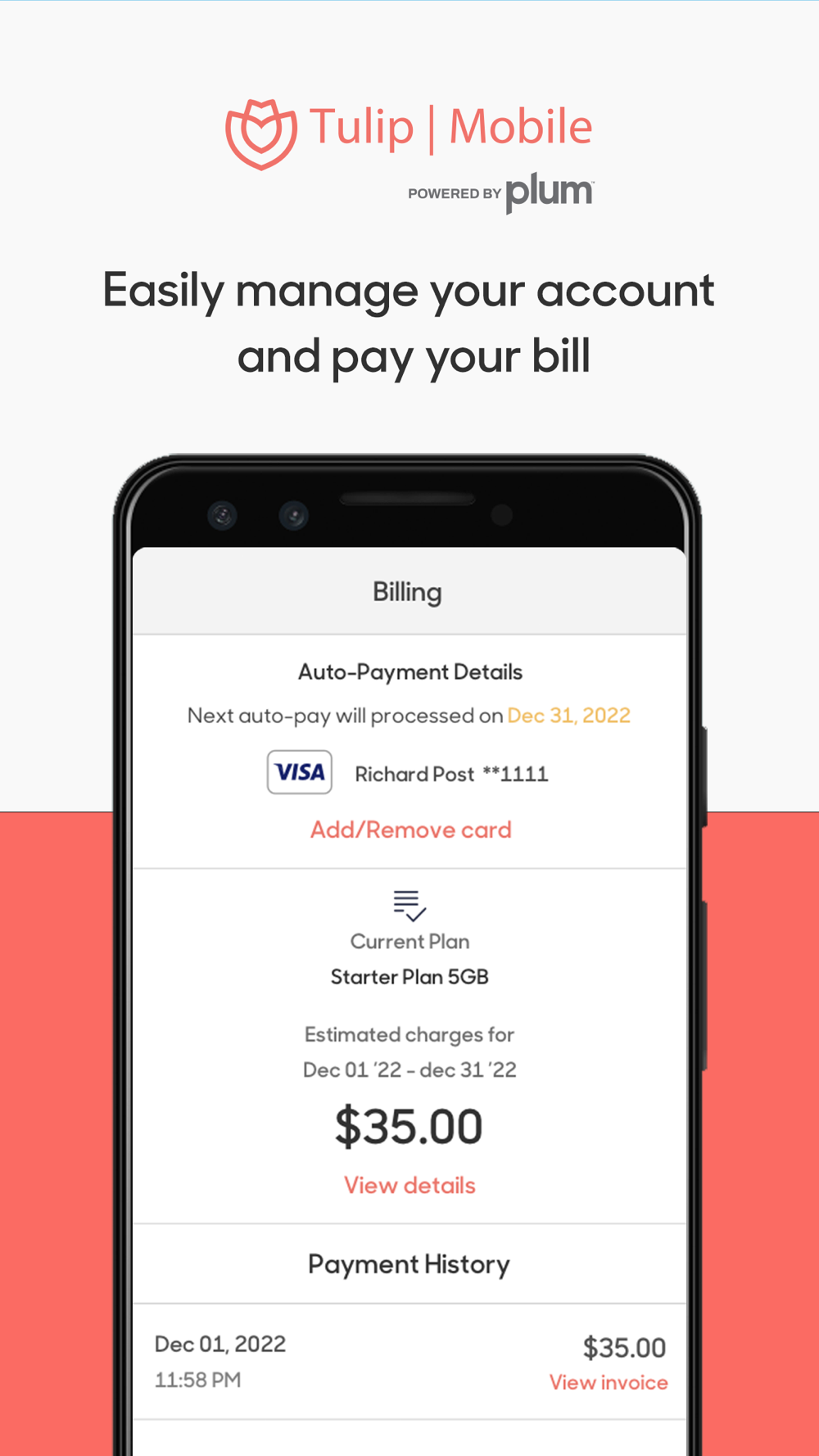 - Manage autopay and billing