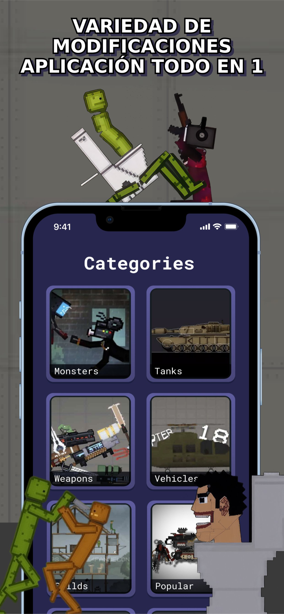 Mods ofrece una experiencia de juego sandbox incomparable donde tu imaginación reina. Descarga Mods para Melon: Sandbox PRO y prepárate para explorar un mundo donde las posibilidades son infinitas y la diversión nunca termina. ¡Abraza el caos, la creatividad y las aventuras sin fin mientras te sumerges en el sandbox más dinámico!