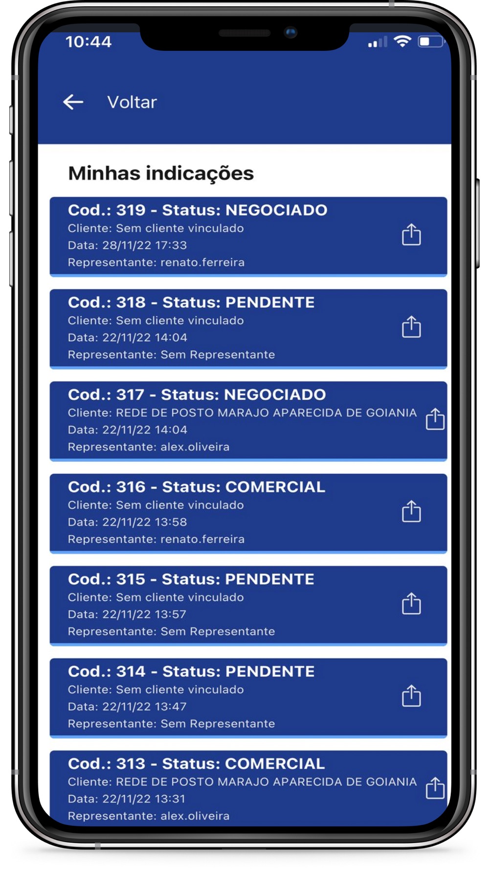 É possível criar indicações (Leads) de forma fácil e rápida para um contato mais rápido e dinâmico com seu cliente.