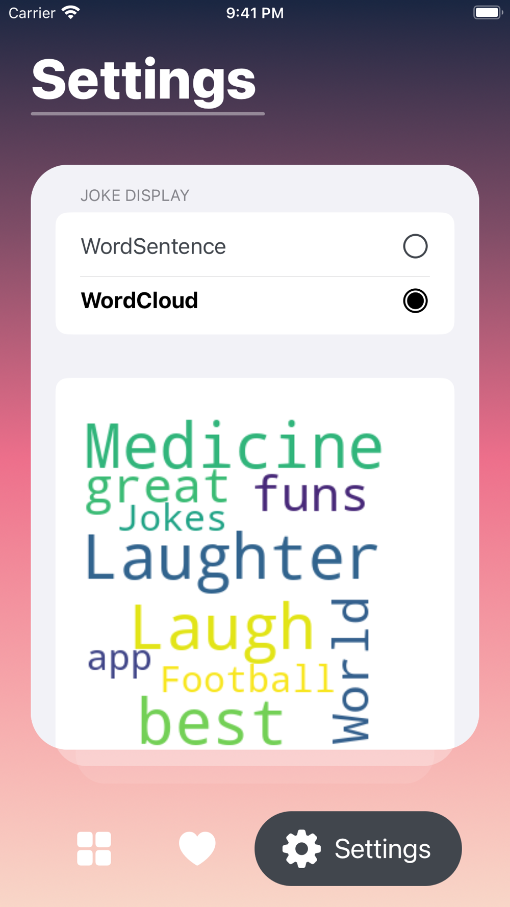 *** Choose the format of the joke you want, like Word-Sentence, Word-Cloud.