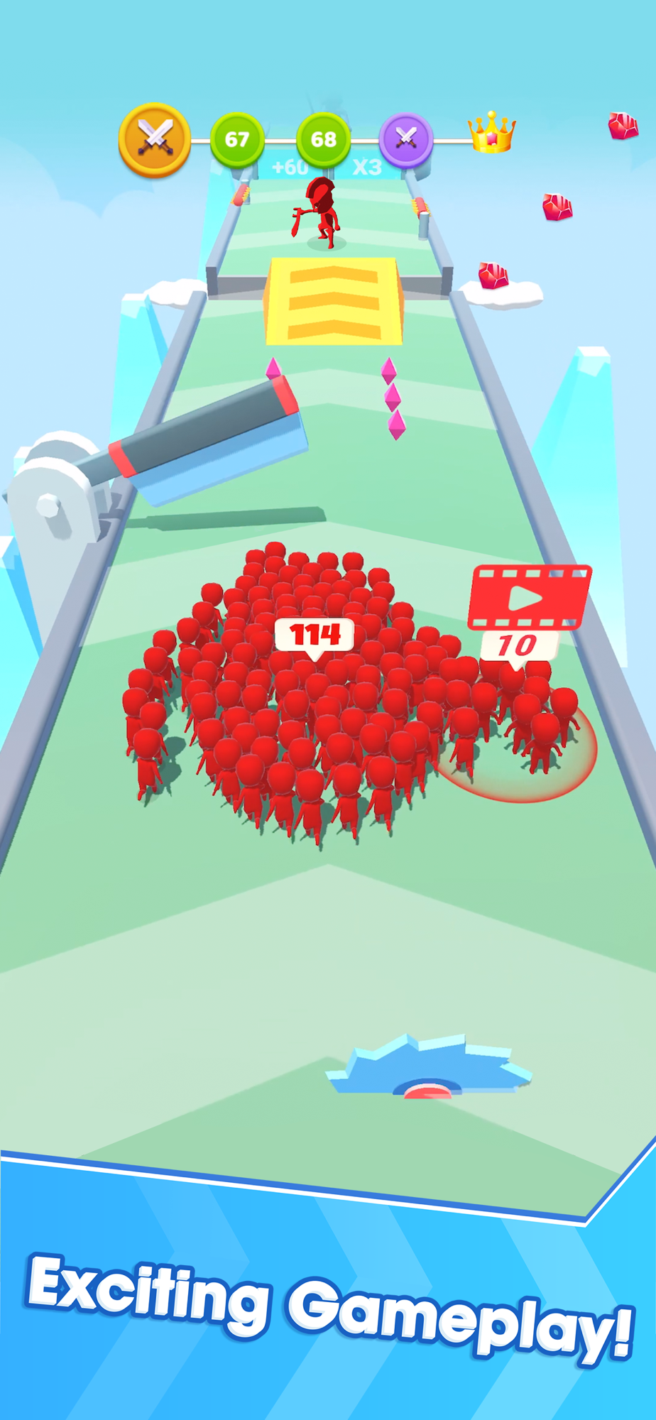 Select the best route, follow it, then gather stickman warriors to battle the opposing crowd. Simple math will increase the number of stickman fighters. As the crowd master, you must guide stickman other through obstacles, fight opponents, collect red diamonds, and defeat the stickman king in the final epic race.