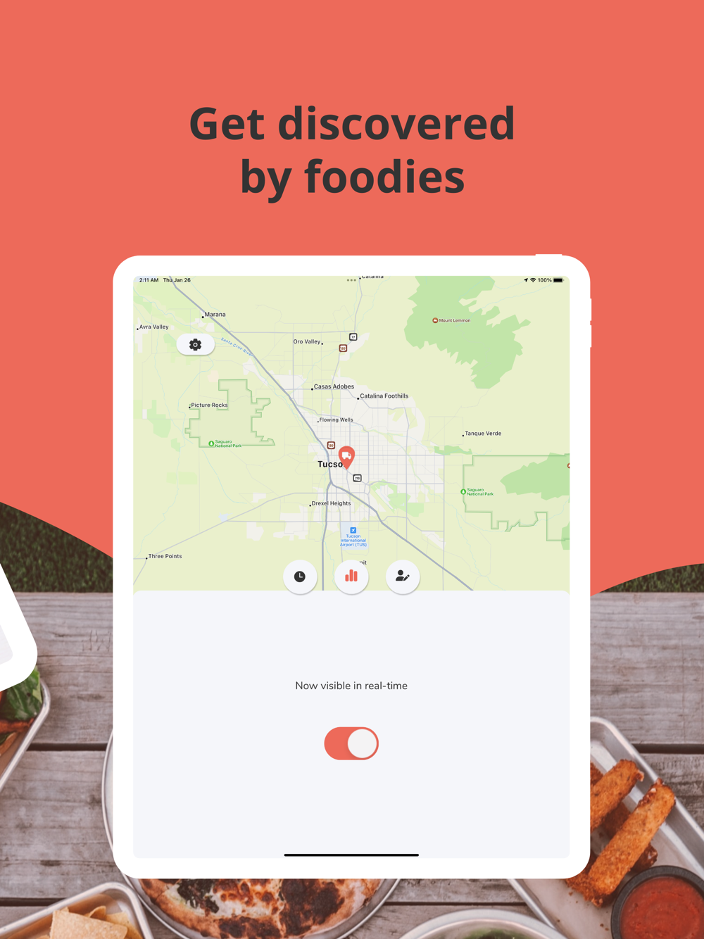 As a vendor, you can swiftly activate in-app ordering for your customers, facilitating convenient pick-up services. This not only streamlines their experience but is a surefire way to boost your sales. Decide when to showcase your truck on Truckly's real-time map, giving you direct control over your visibility. If you operate on a consistent schedule, simply input your weekly hours. Don’t forget to uplift your profile with compelling images of your truck, dishes, and detailed menu, ensuring you stand out and attract more food enthusiasts.