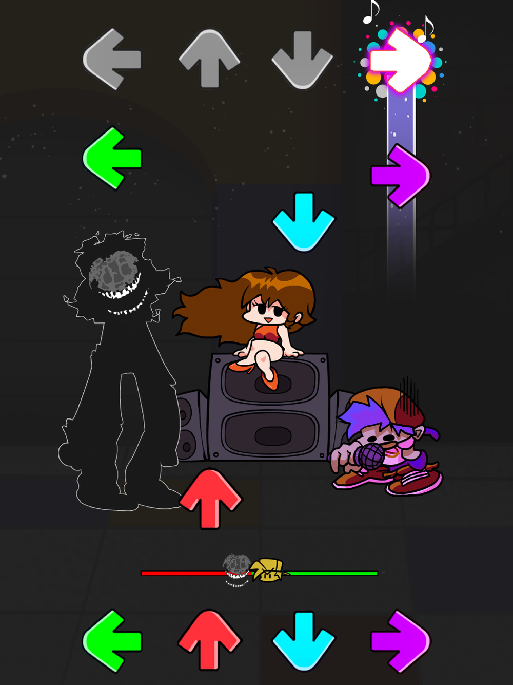Here we mimic the original concept and mechanics of Scary dance indoors VS FNF Mod , that's means that you need to catch the arrows to make vocals that in combination with an instrumental will make a song.