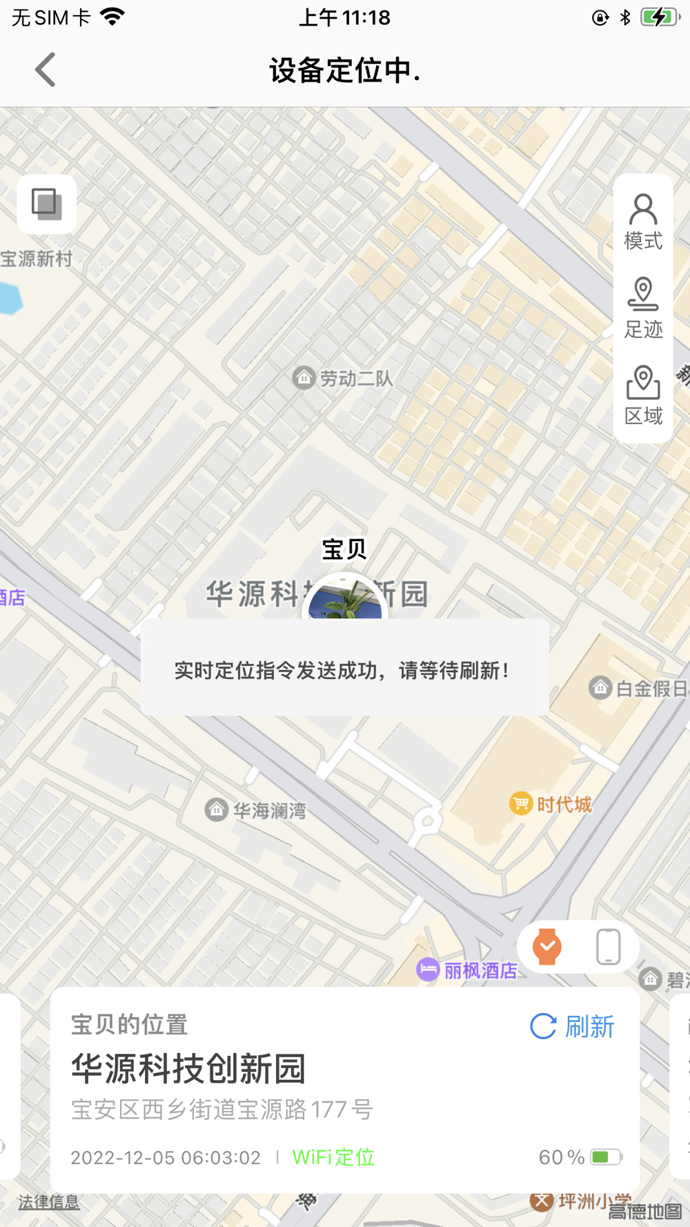 2 定位:APP 可以查询设备的最后位置并在地图上显示出来,可以查询设备的实时位置