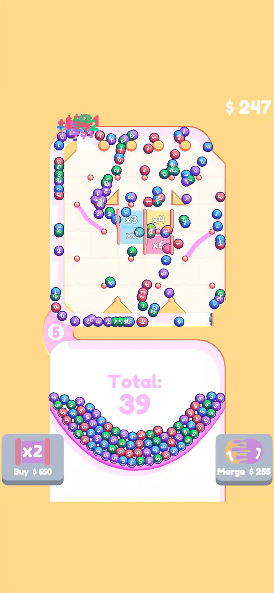 Balls will be looping and there will be gates to merge, it ain’t an easy task to merge them and win the game! The best trick is to merge the multiplier gates to increase the number of balls on the board at the right time and reach new levels!