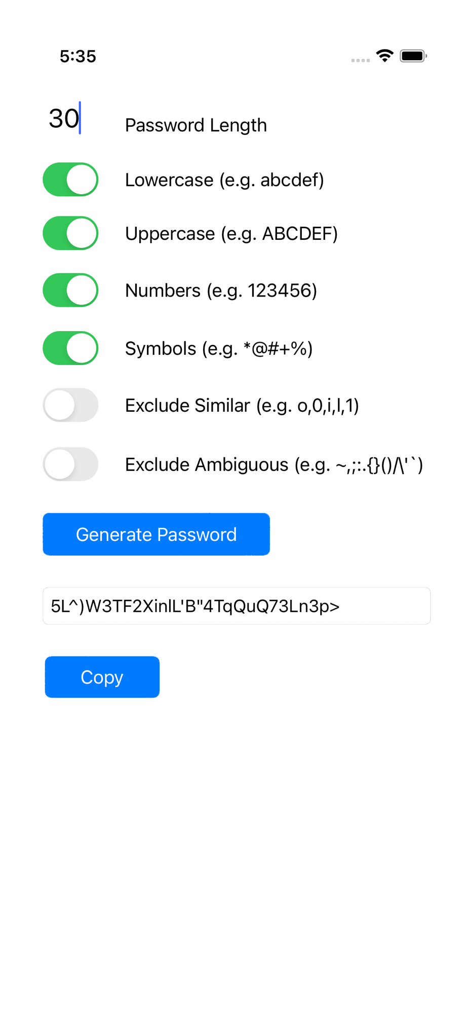 Exclude Similar Characters - If you want to easily differentiate from o from 0, you have the option to exclude these characters in your password.