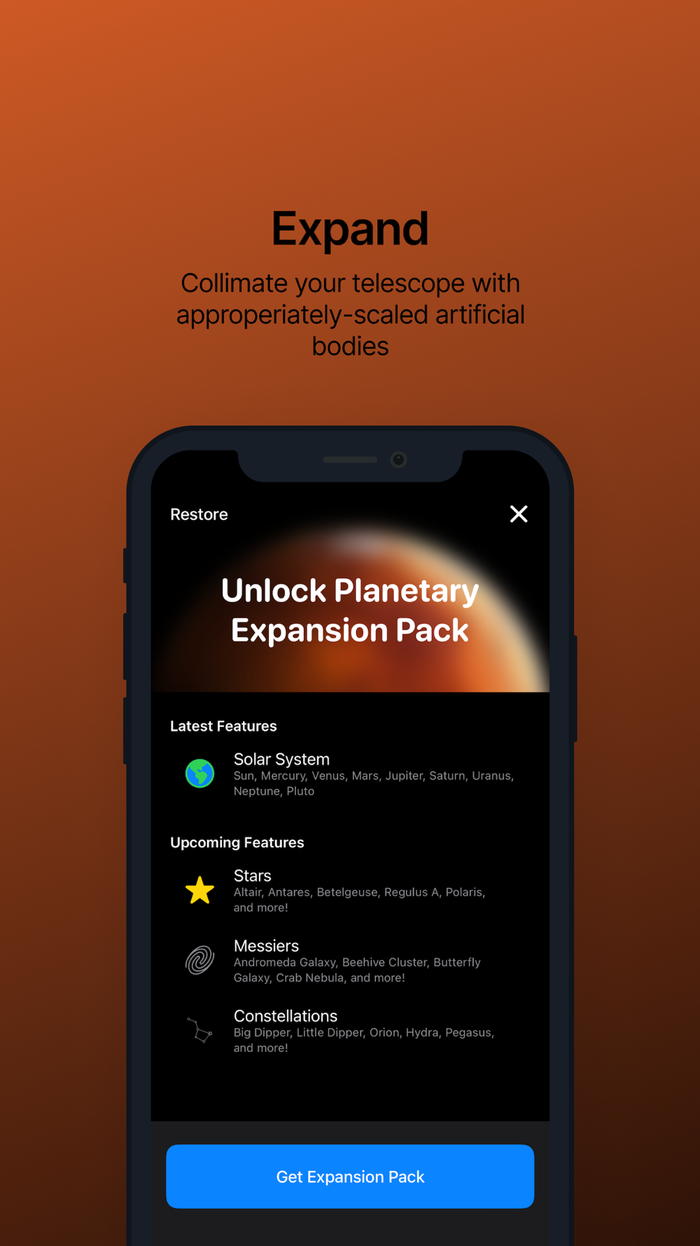 Calibrate your telescope using true-to-scale planetary images.