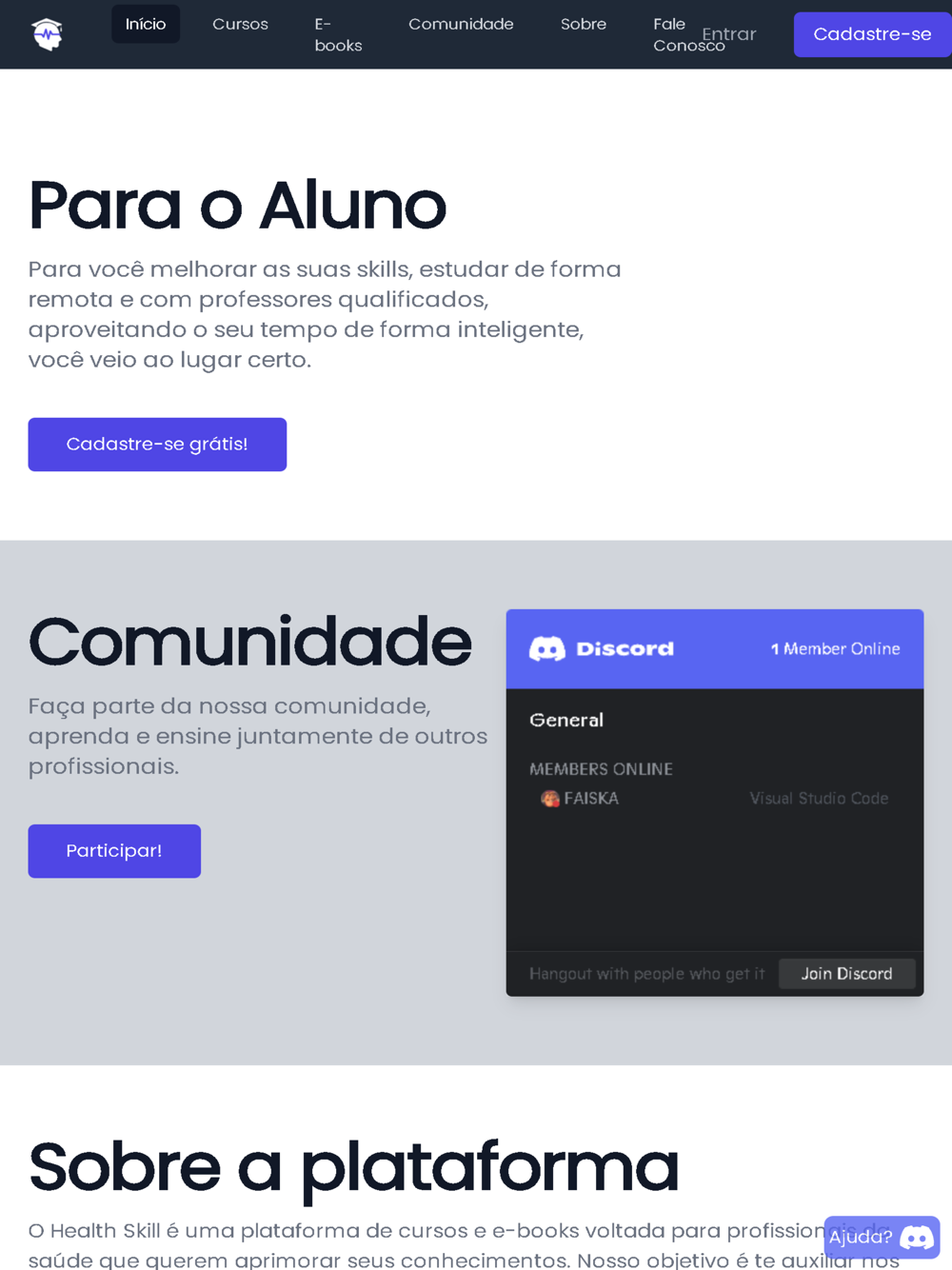 O Health Skill é uma plataforma de cursos e e-books voltada para profissionais da saúde que querem aprimorar seus conhecimentos. Com a integração entre o site e o APP e cursos com professores renomados, o nosso objetivo é complementar seus estudos de maneira inteligente, onde quem manda é você. Estude quando e onde quiser, do PC ou celular, e o melhor: continue de onde parou sem perder nada. Ah! E se ficar com alguma dúvida entre na nossa comunidade, onde professores e colegas estão prontos para te ajudar.