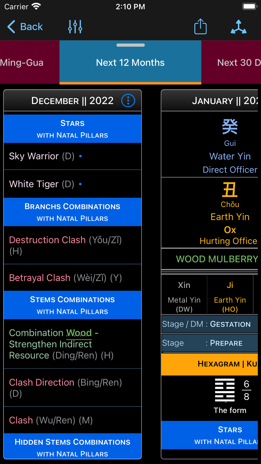 All pillars are providing numerous components details as well as all its stars and Branchs and Stems Combinations.