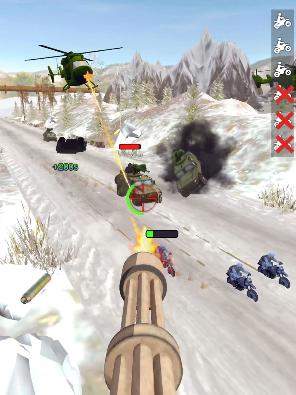 Cover your allies from your helicopter while they're fleeing their attackers on the ground. Can you keep your friends alive and take out their chasers before it's too late?