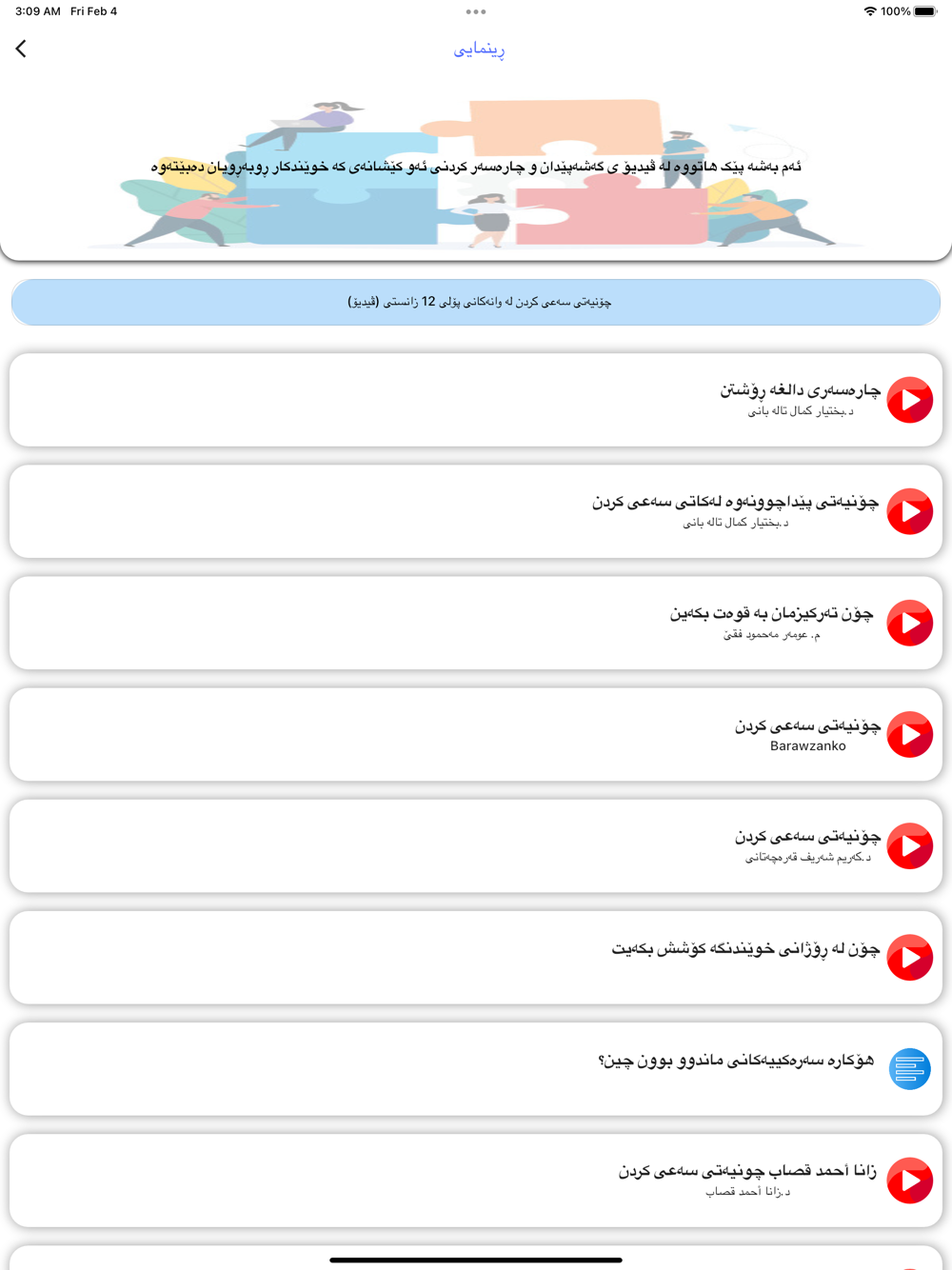 ئەپلیکەیشنەکە پێک هاتووە لەم بەشانە :