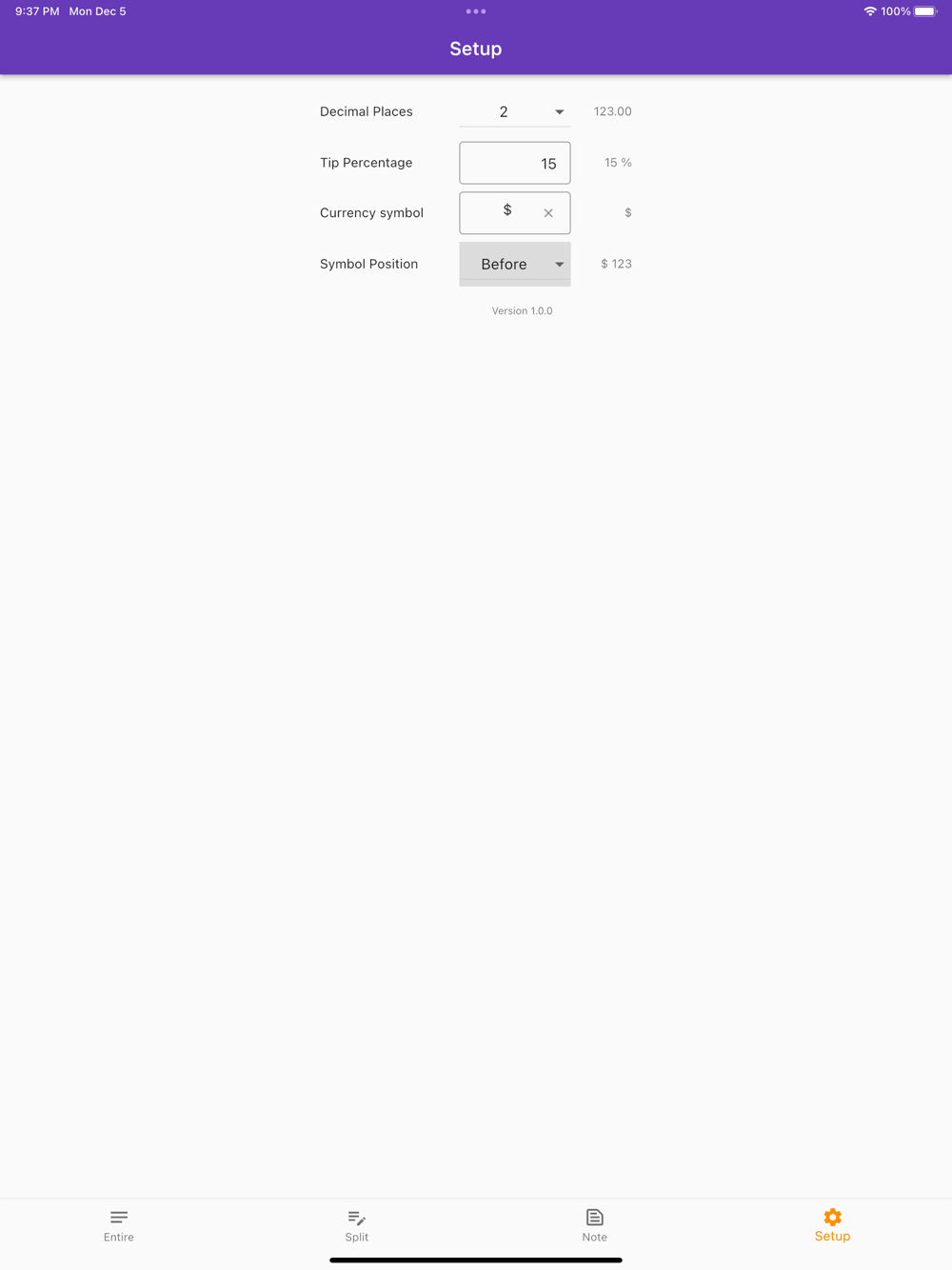 The app calculates and displays tips on the bill as a percentage set by the user. It can also be calculated when multiple people split the payment.