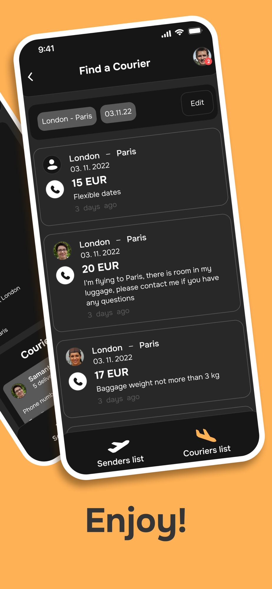 Then our app is just for you! What if we tell you that you can find the person who is flying to where you want to deliver the package today?