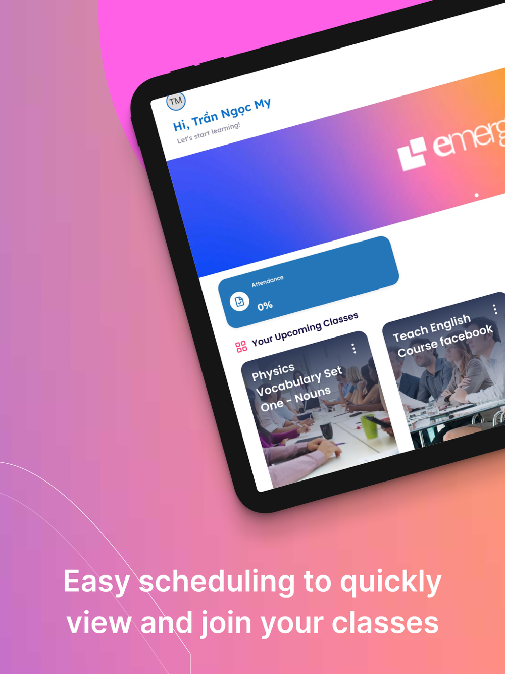 The eMerge app offers a unique and innovative hybrid model, diverse learning experiences, and rapid progress to achieve learning outcomes. The eMerge app supports students to become active learners with the skills and confidence for success in their language learning journey and life.