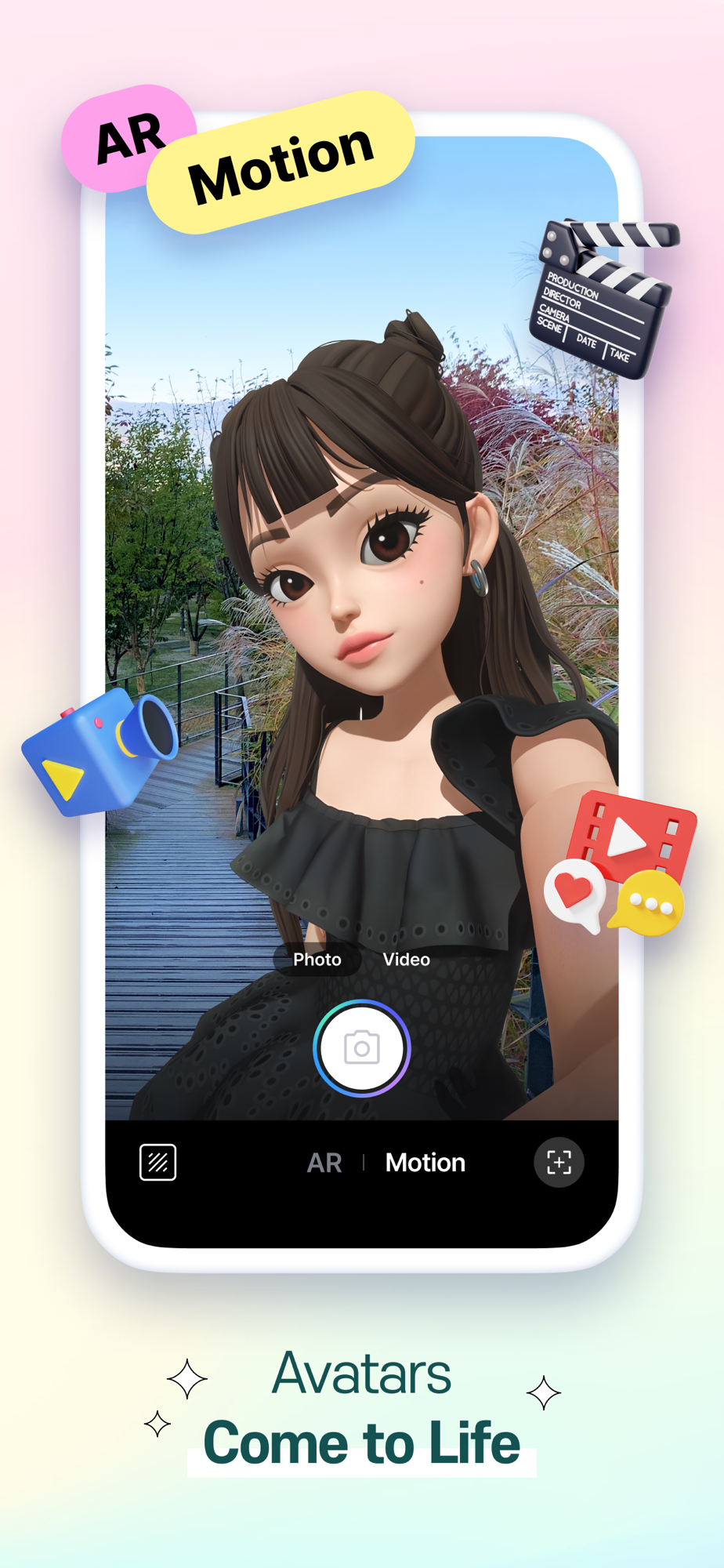 Experience a camera equipped with AR (Augmented Reality) and motion-recognition features.