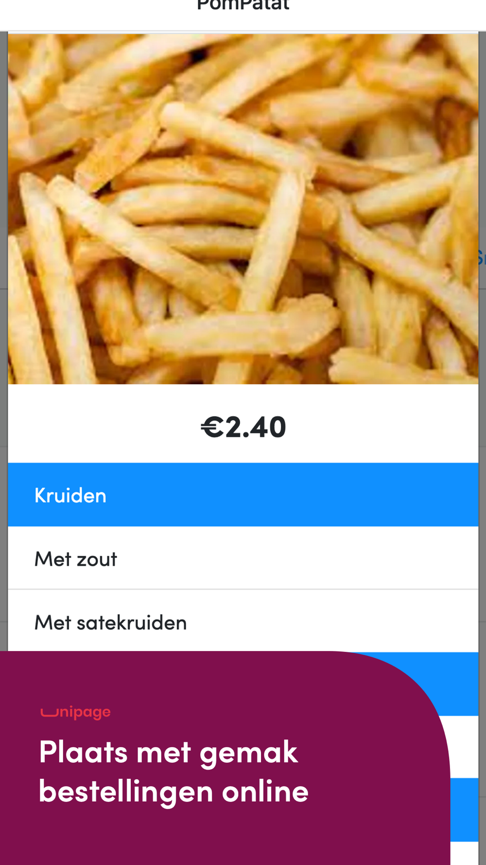 Probeer nu onze nieuwe app en ontdek hoe makkelijk en snel je je favoriete afhaalmaaltijden kan bestellen! Je kan al direct betalen en de vooruitgang volgen van je bestelling. Zo weet je precies wanneer je maaltijd klaar is om afgehaald te worden. Bon appétit!
