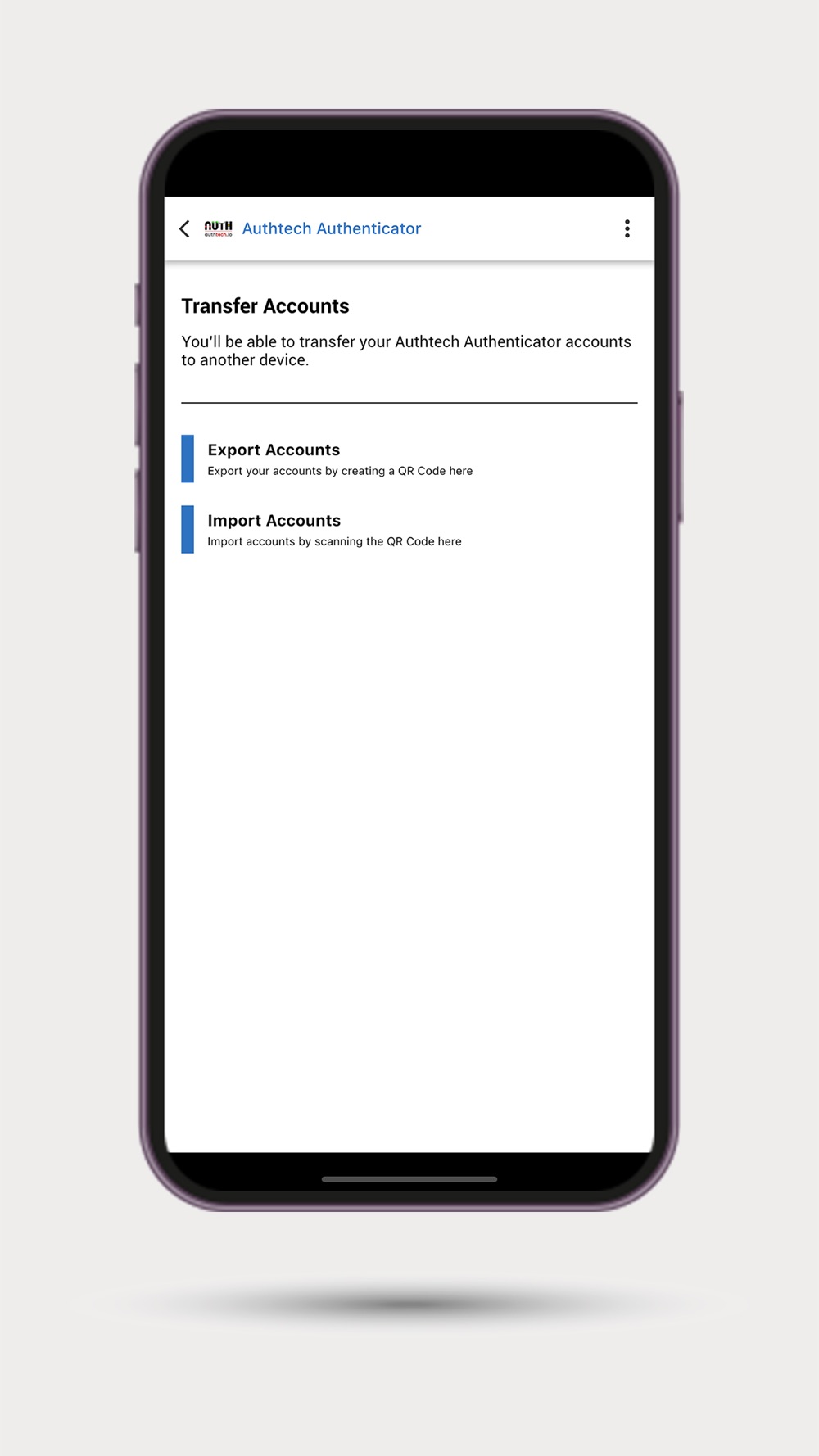 You can set up as many accounts as you require from any application/website/bank and more and enable two-factor authentication on all your preferred accounts. Even if you switch to a new device, you can easily import all your accounts set in the previous device via the relevant options(Transfer Account) provided in the AuthTech Authenticator application.