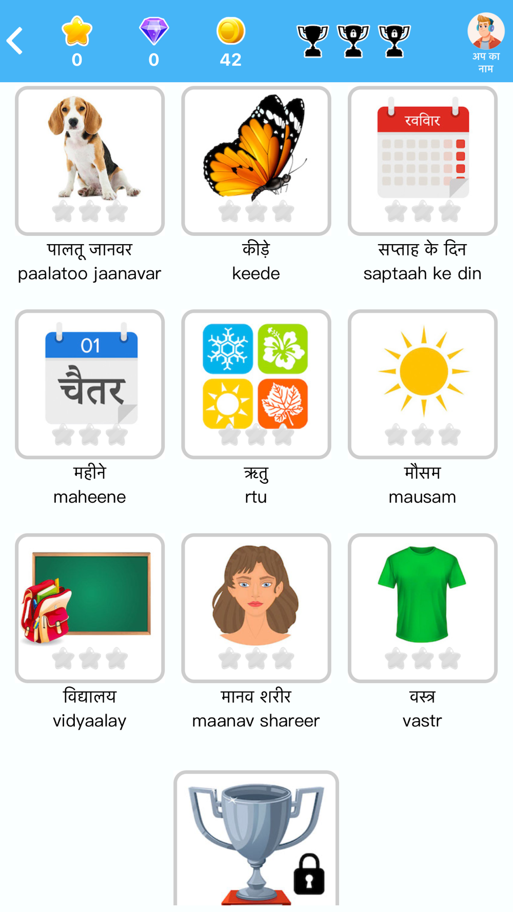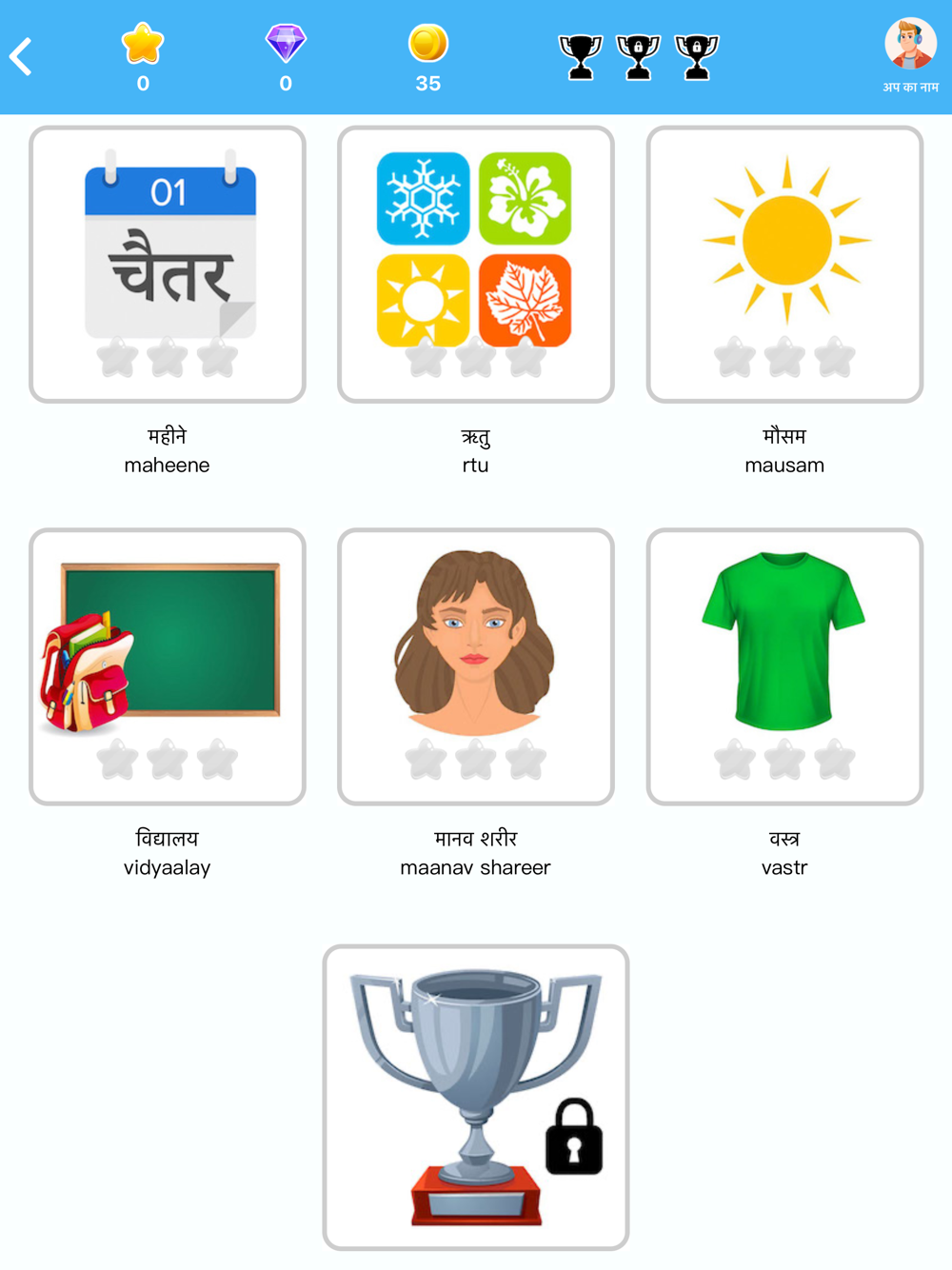 Basic: Alphabet letters , Numbers , Colors , Verbs , Food …