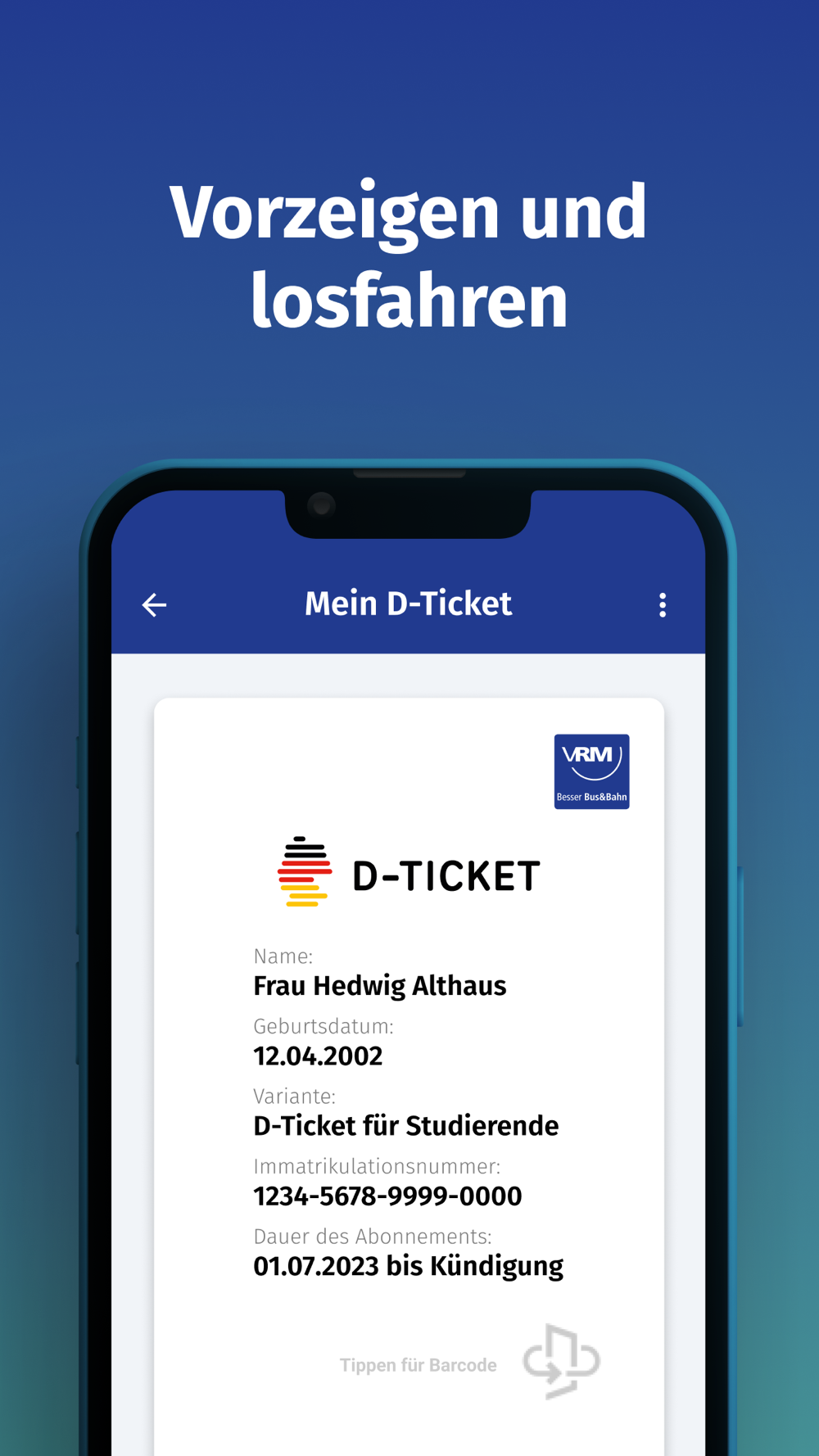 Für alle iPhone Smartphones stellt der VRM eine kostenlose App zum Kauf des Deutschlandtickets im Abonnement zur Verfügung.