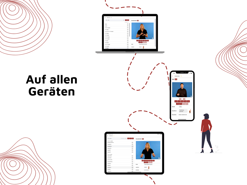 Die Gebärden im Kestner sind in über 100 Rubriken gegliedert. Eine Suchfunktion und viele Filter erleichtern das Finden von Begriffen als DGS Gebärde. Falls ein gesuchter Begriff nicht als Gebärde im Kestner enthalten ist, werden Ihnen Synonyme Gebärden vorgeschlagen.