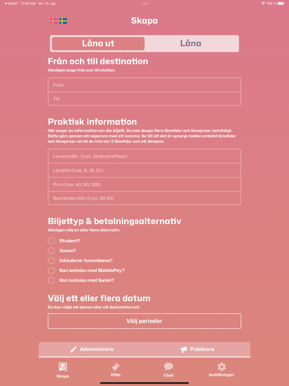 Skånetrafikken tilbyder helt lovligt private med pendlerkort at udlåne sin billet 15 gange over 30 dage til fem forskellige. Det er de færreste der udnytter denne udlånsfunktion. Lend Ticket giver private muligheden for at oprette lånebilletter samt låneprofiler. Alle tilgængelige udlånsbilletter og låneprofiler vises i et overblik som opdateres i direkte tid. En chatfunktion gør det nemt at komme i kontakt med hinanden. Ved ny aktivitet får man en push-notifikation. Man kan bedømme alle man har været i kontakt med og bedømmelserne er altid synlige for at sikre tilliden mellem brugere.