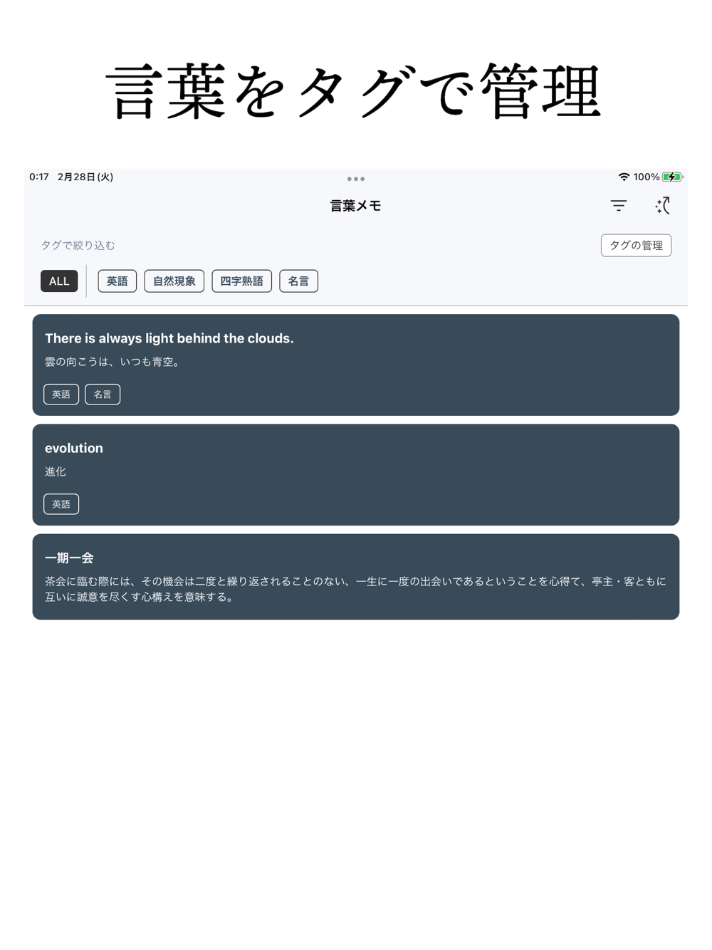 言葉メモ - タグで言葉を管理して、iPhone と同期