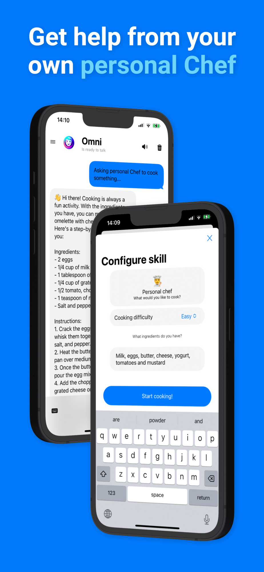 - Have your very own PERSONAL CHEF one tap away from you at all times! Tell the Chef what ingredients you have and how difficult can their instructions be and you'll be sure to get the tastiest, highest-quality recipes!