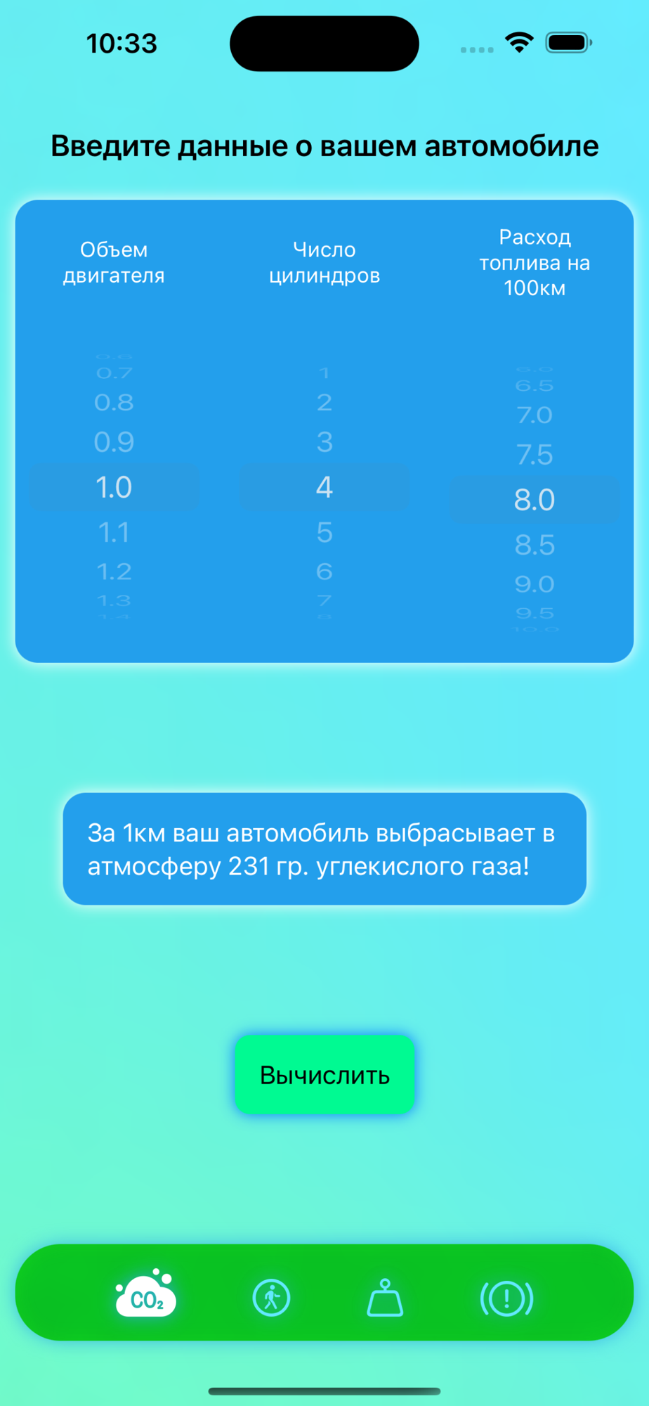 Мобильное приложение Eco Shahar работает с помощью алгоритма машинного обучения, который определяет количество выбросов углекислого газа в атмосферу легковыми автомобилями, принимая такие входные данные как объём двигателя, количество цилиндров и расход топлива. Для формирования алгоритма было использована база данных содержащая 946 записей, точность результатов работы алгоритма составляет 98%. Помимо того, приложение также осуществляет функции шагомера и выполняет расчёт энергозатрат, количества сожженных калорий при ходьбе, средней скорости ходьбы. В том числе есть модуль расчета индекса массы тела (ИМТ) по росту и весу. Приложение разработано центром передовых технологий и стратегических инициатив Ташкентского педиатрического медицинского института.