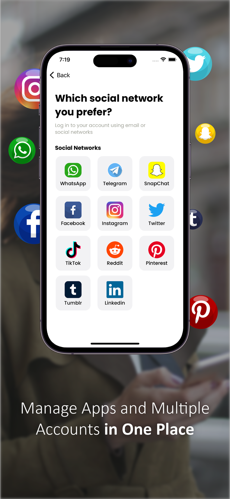 All you have to do is create a clone of the application you want to add more accounts to, run the application and log in with the accounts you want to add. Experience the convenience of using multiple social media accounts on a single device.