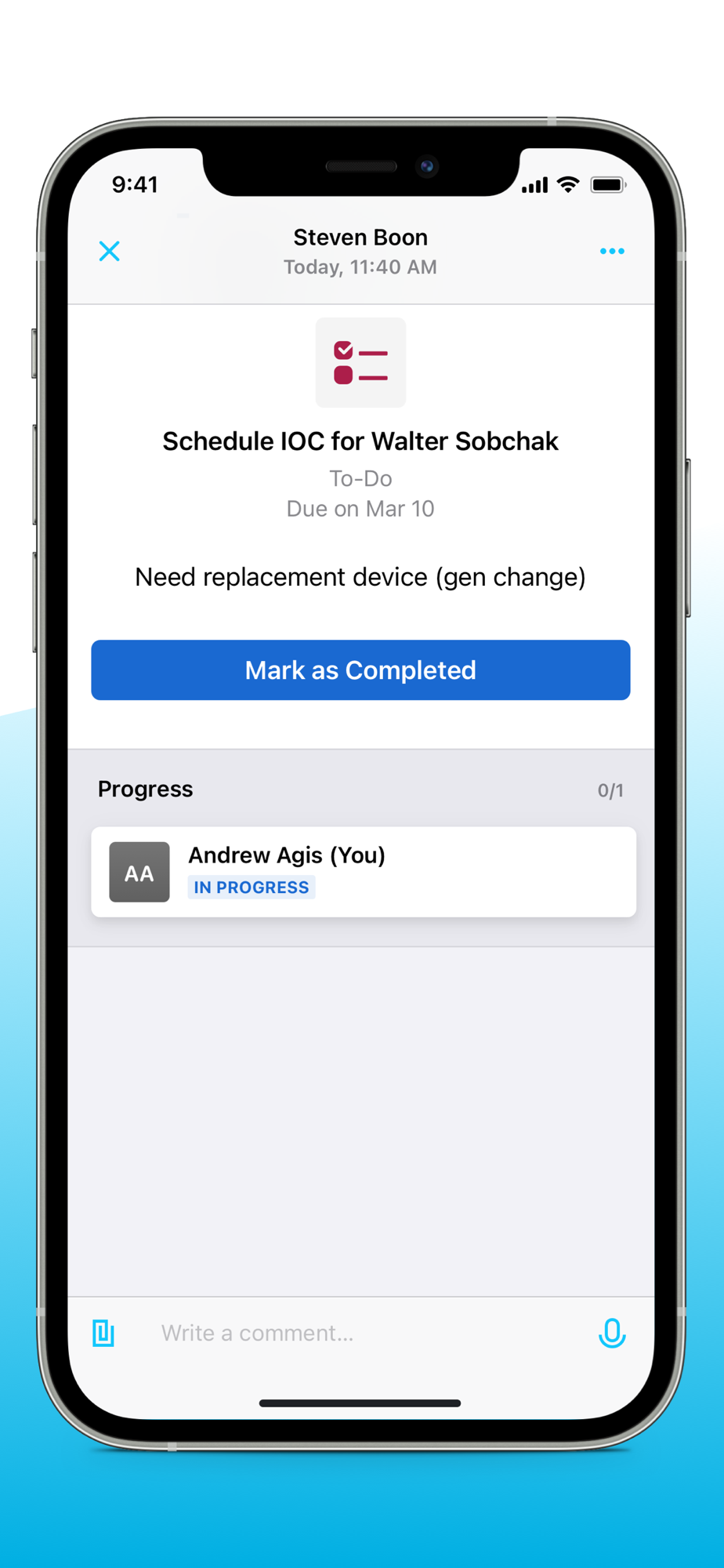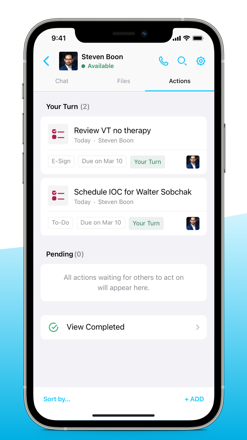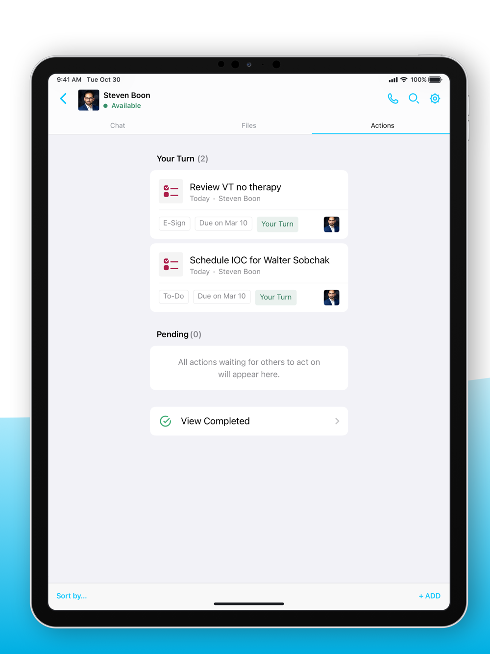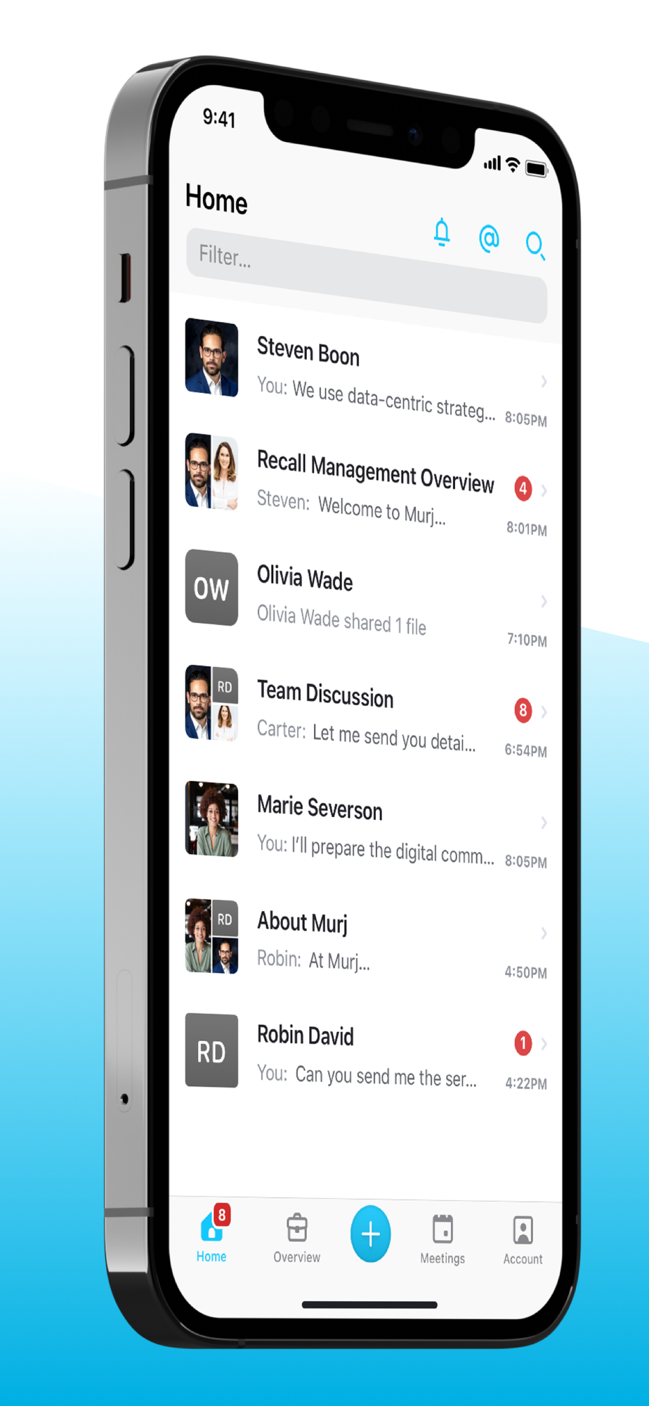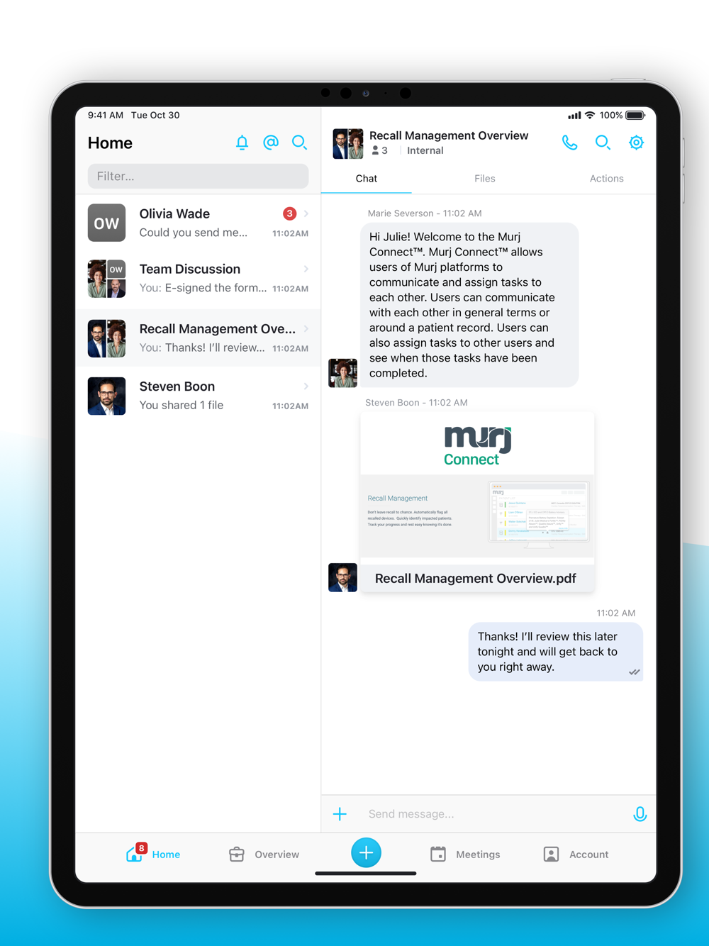 Murj Connect™ enables streamlined interactions and seamless task management for optimal efficiency surrounding various processes. Users can communicate with each other in general terms or around a patient record, including document and file sharing. Murj Connect™ allows users to assign to-do tasks within the platform, and see when those tasks have been completed. The mobile app will notify the user if they have a new interaction or task they need to review, and allows them to respond.