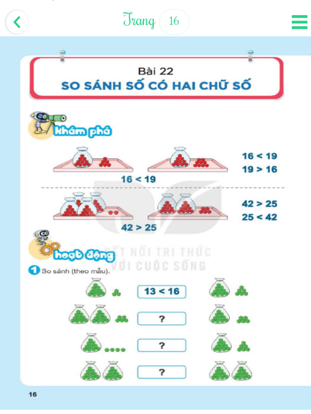 Toán Lớp 1 kết nối tri thức mô phỏng chương trình học sách giáo khoa Toán Lớp 1 bộ sách kết nối tri thức của bộ giáo dục.