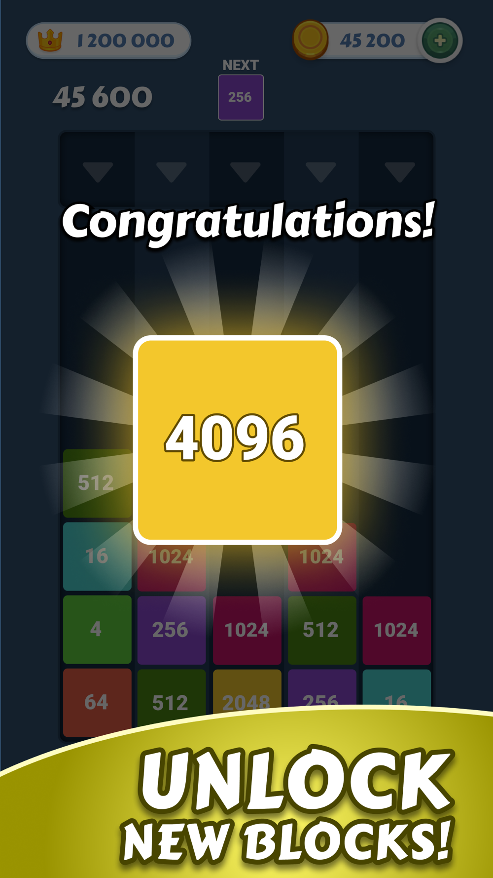 Drag and shoot blocks to make new numbered blocks. The difficulty gradually rises with larger numbered blocks as you advance through the game, from 1024 to 2048 to 4096 and beyond into the Diamond Block.
